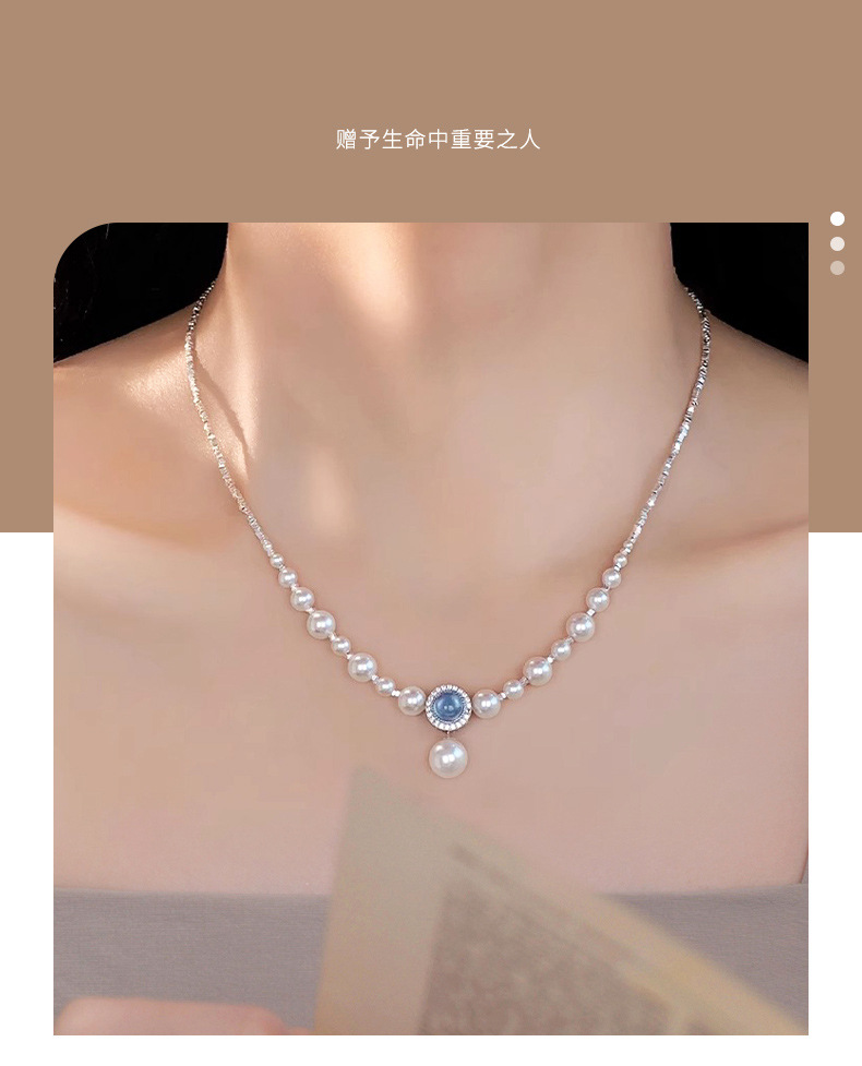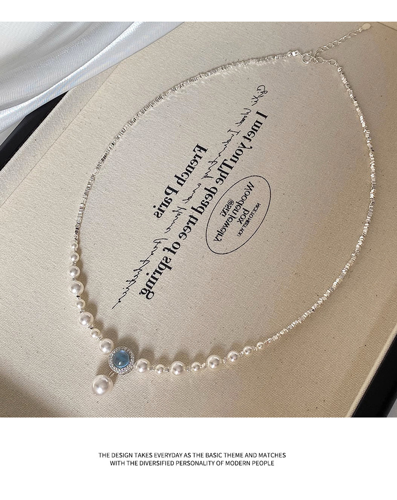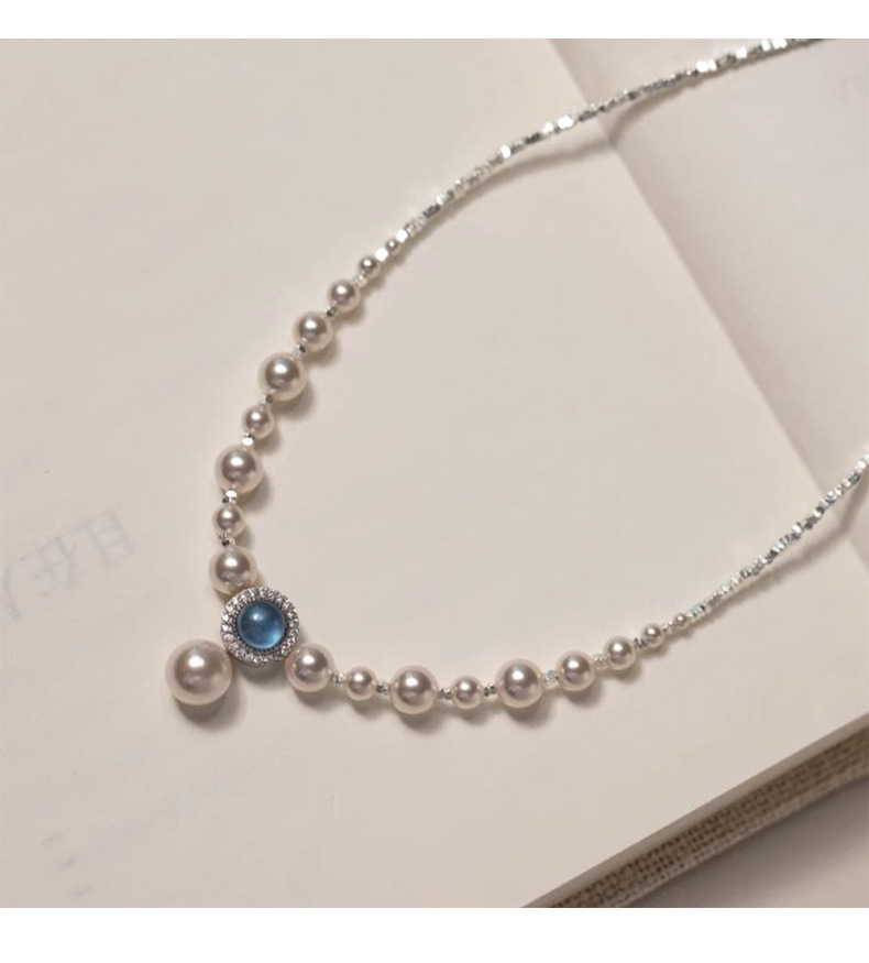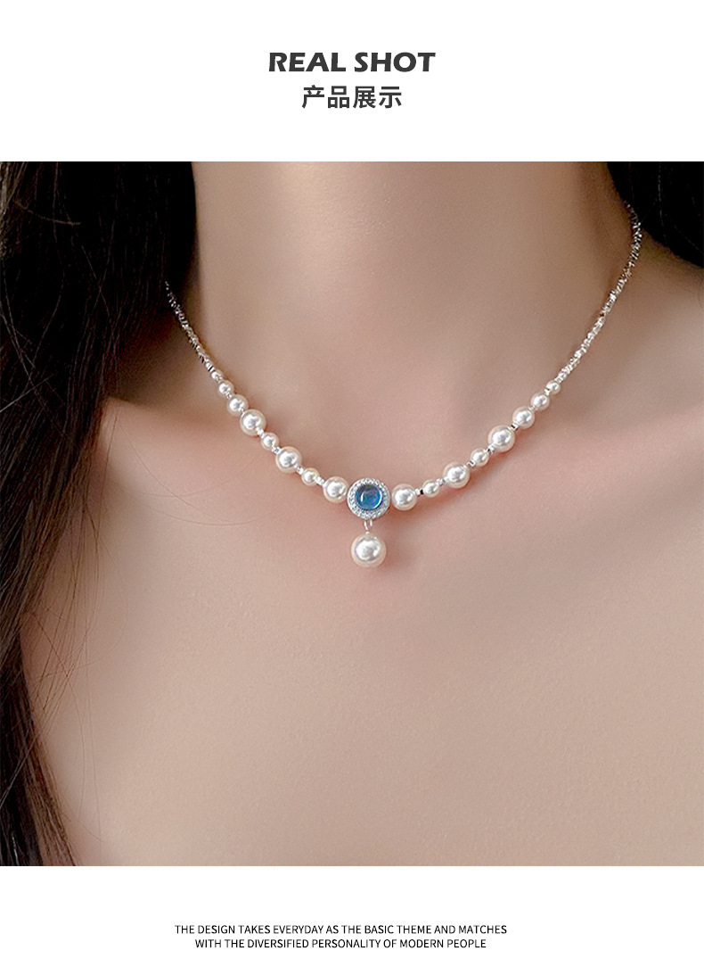 海藍宝砕銀真珠ネックレス女2024新型爆金ファッション鎖骨鎖軽贅沢小衆高級首鎖