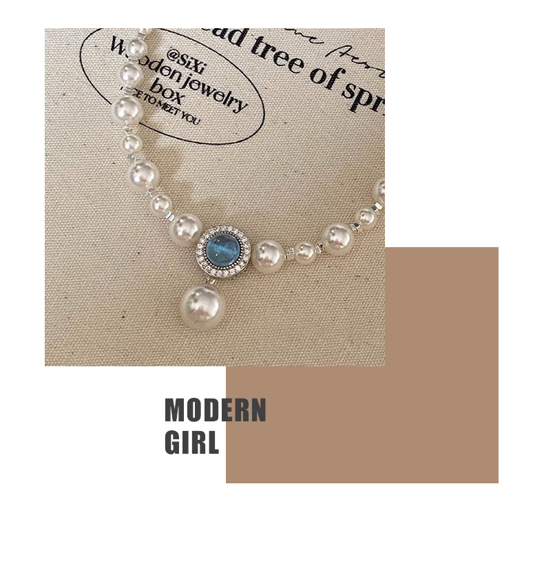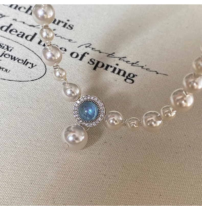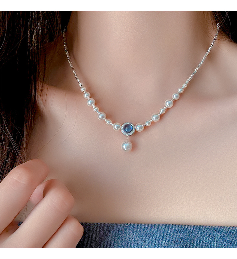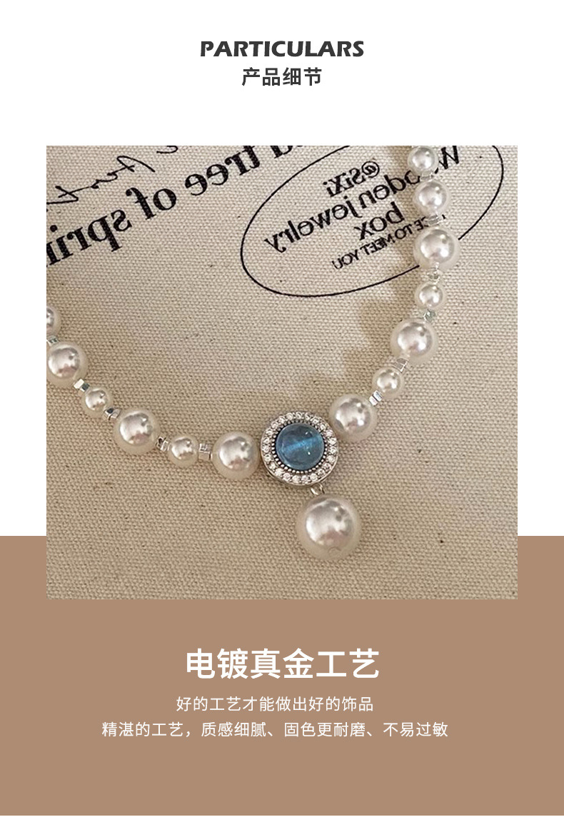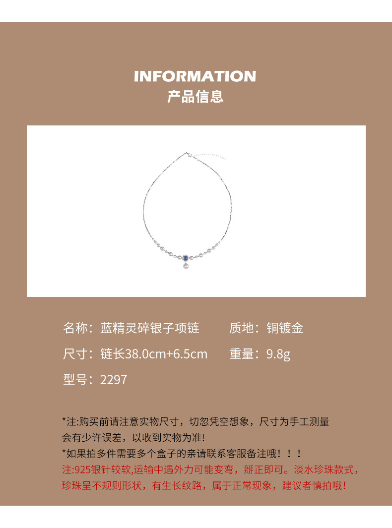 海藍宝砕銀真珠ネックレス女2024新型爆金ファッション鎖骨鎖軽贅沢小衆高級首鎖
