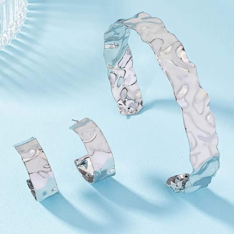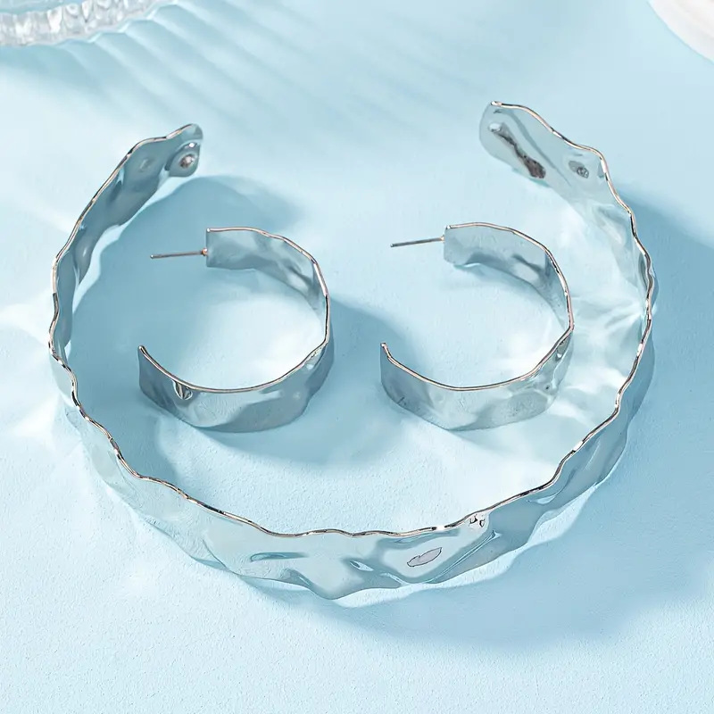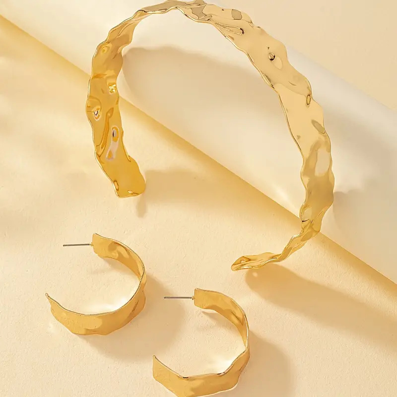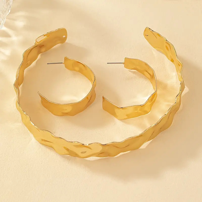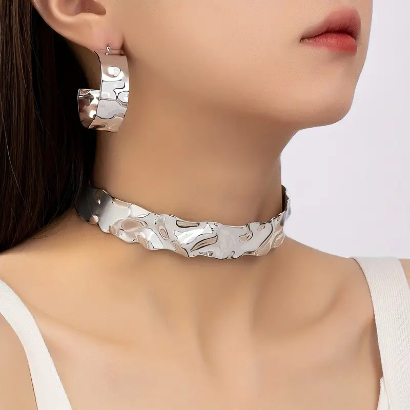 金色の銀色の険しいしわの開口部の太い首輪の耳輪のセットの女性のシンプルでファッション的な個性の首の飾りの耳飾り