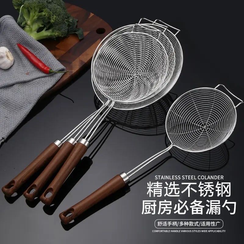 304リークスプーン両耳網リークステンレスフィルター超密木柄揚げ物大サイズスプーン家庭用調理器具すくい面