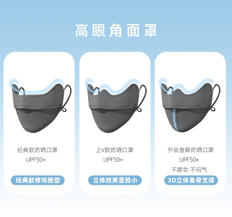 夏の薄っぺらな日焼け止めマスク女UPF50紫外線防止3d立体魚の骨は化粧をこすっていません。