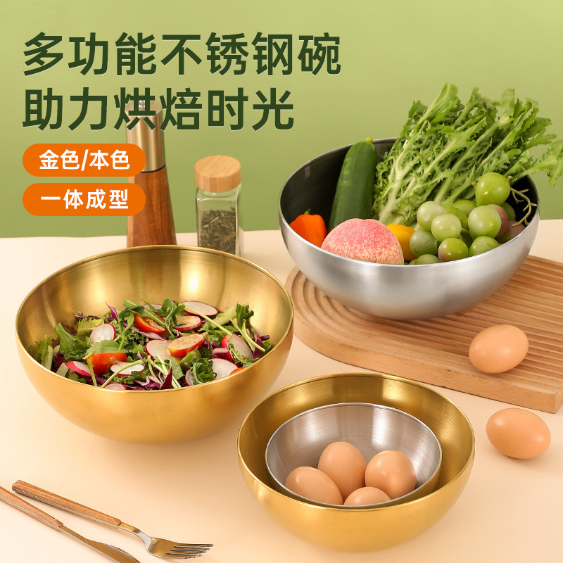 韓国式ステンレスサラダ碗金色冷麺碗業務用スープ碗練飯碗ステンレス鉢内巻きサラダ碗