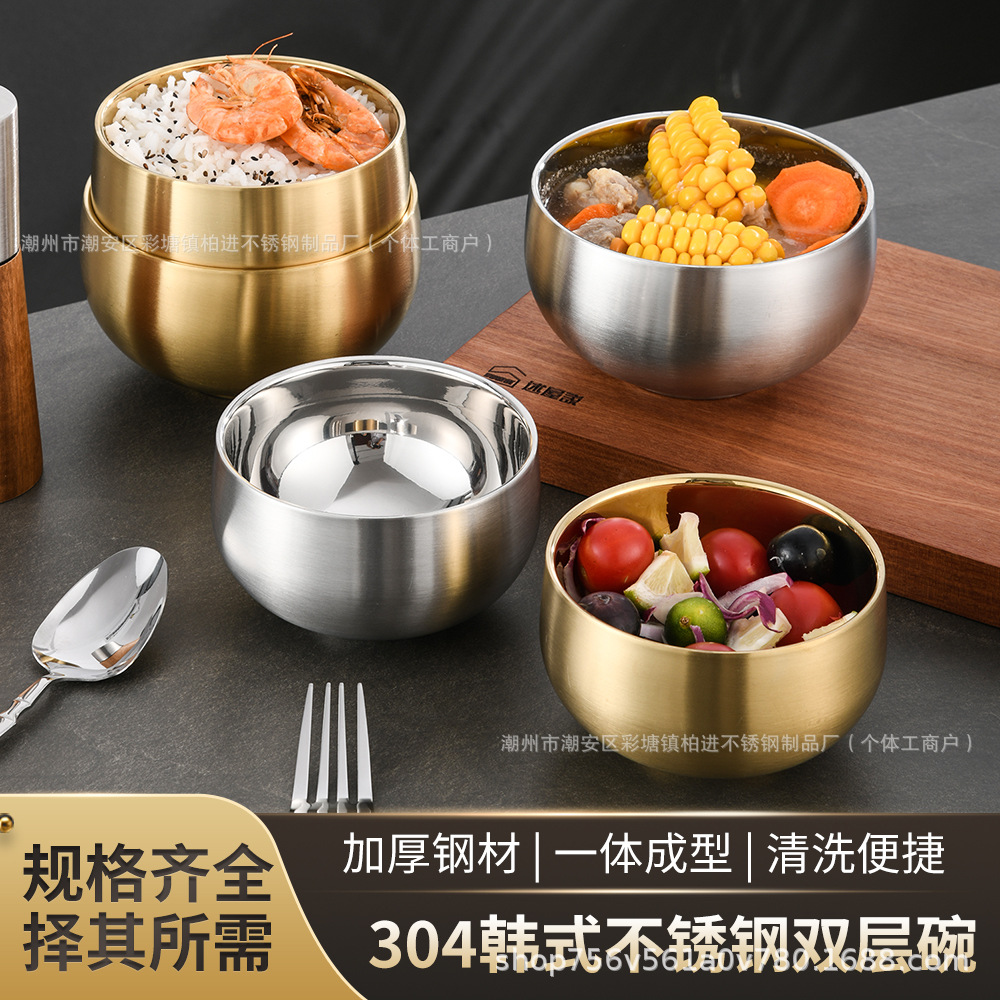 304 ステンレス鋼のライスボウル韓国スタイルの膨張ボウル家庭用クリエイティブ火傷防止二層ボウルスープボウル子供のレトロ料理