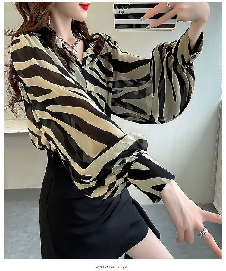 実写スポット2023秋の新型レトロプリント長袖大サイズ太ったMMシフォンシャツ女