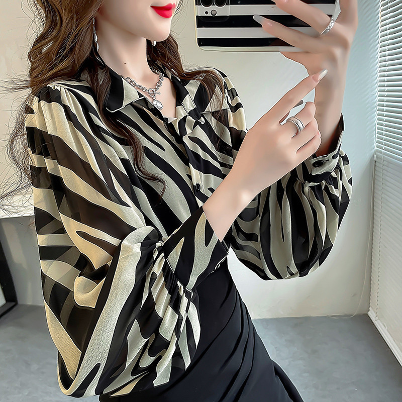 トップスのみ 街で注目される美女/純粋で甘い小香風香港風レトロシックな御姐風シフォンシャツ