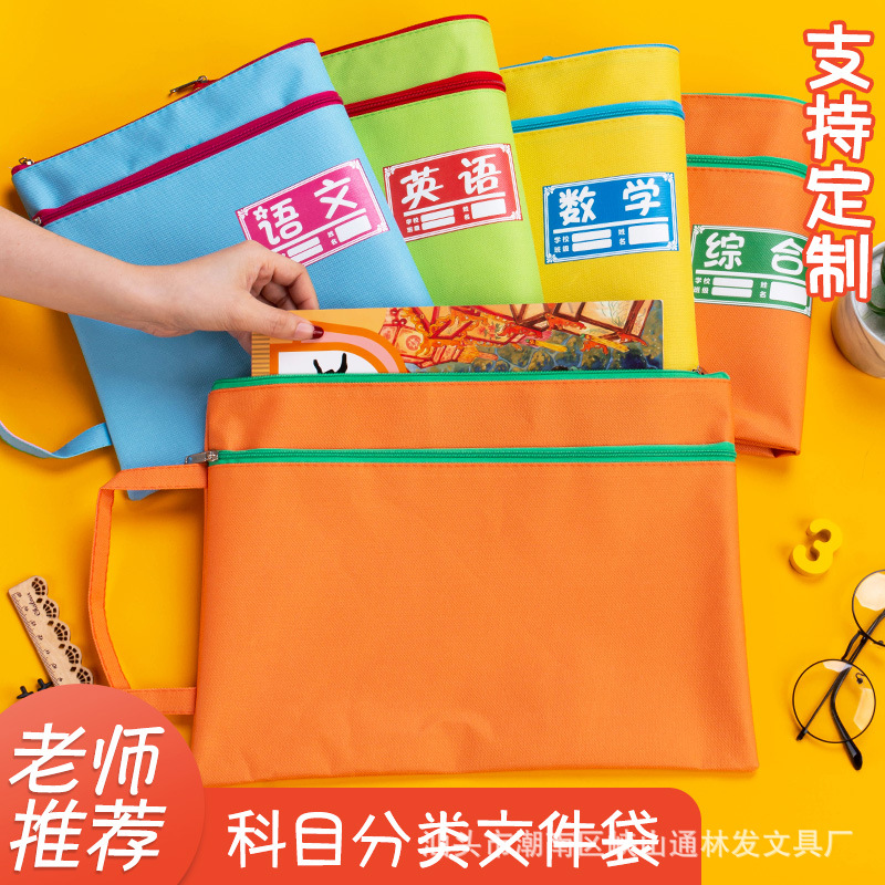 A4手提げ二重学生科目袋分類試巻収納袋防水ファスナー資料書類袋印刷科目
