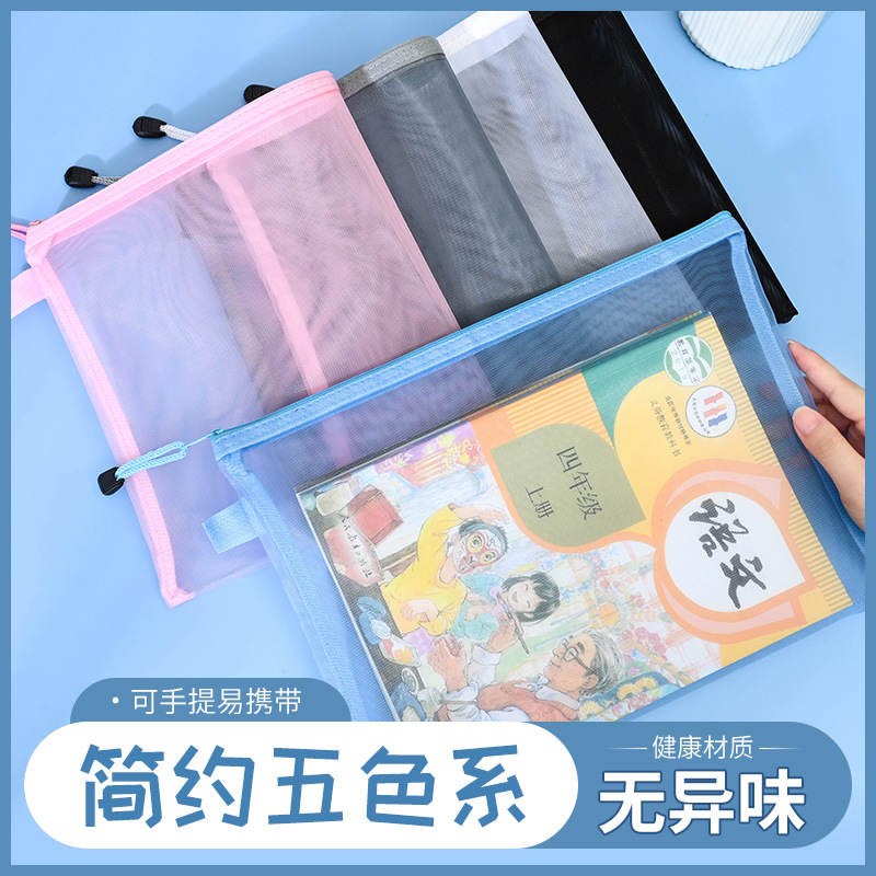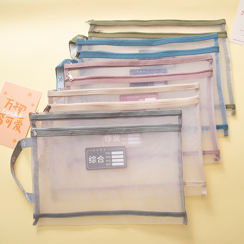 A4科目分類袋大容量二重ファスナー作業収納袋学生用透明ネット糸多彩資料袋