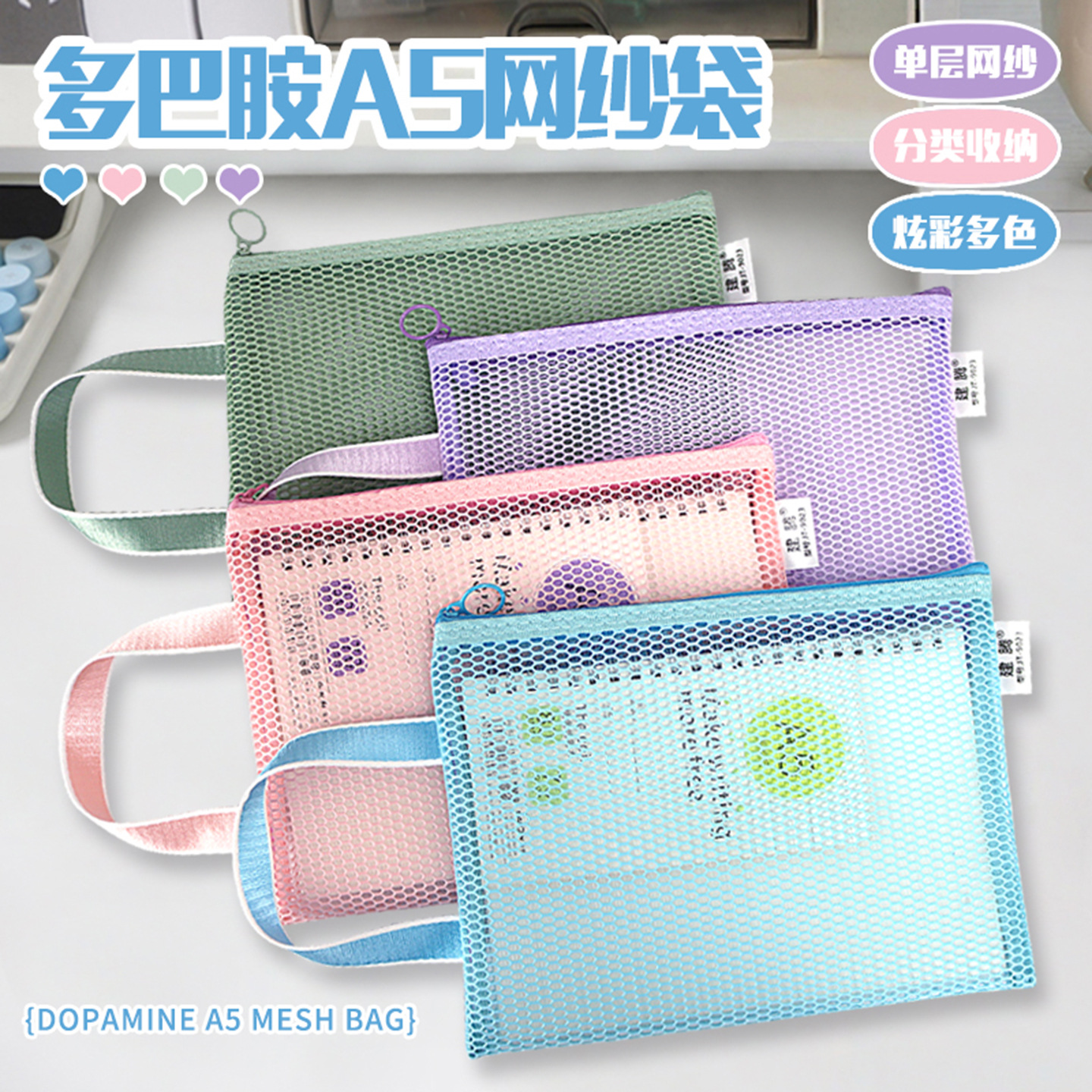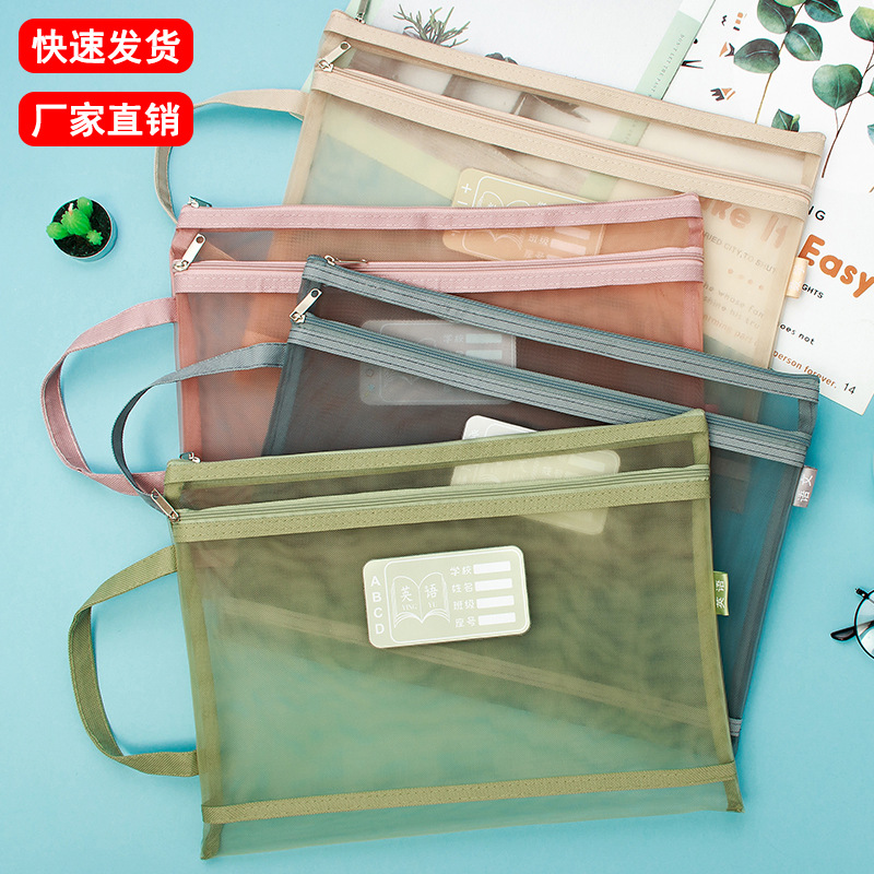 マカロン厚手学生分類科目書類袋手提げ掛け式a4大容量二重ナイロンメッシュ収納