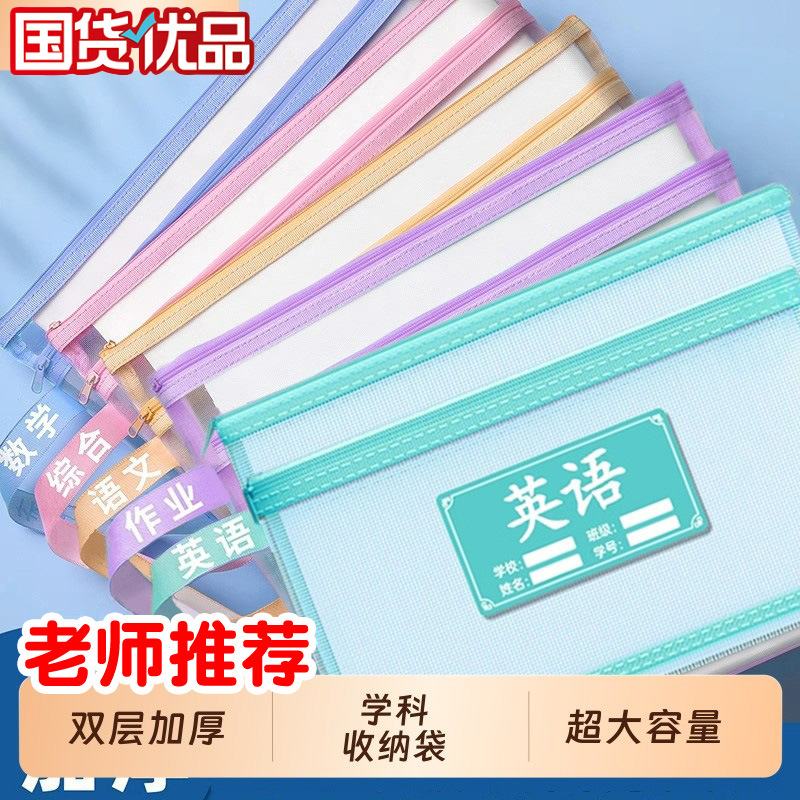 网纱科目分类袋双层尼龙网纱科目袋文件袋学生试卷袋作业收纳袋