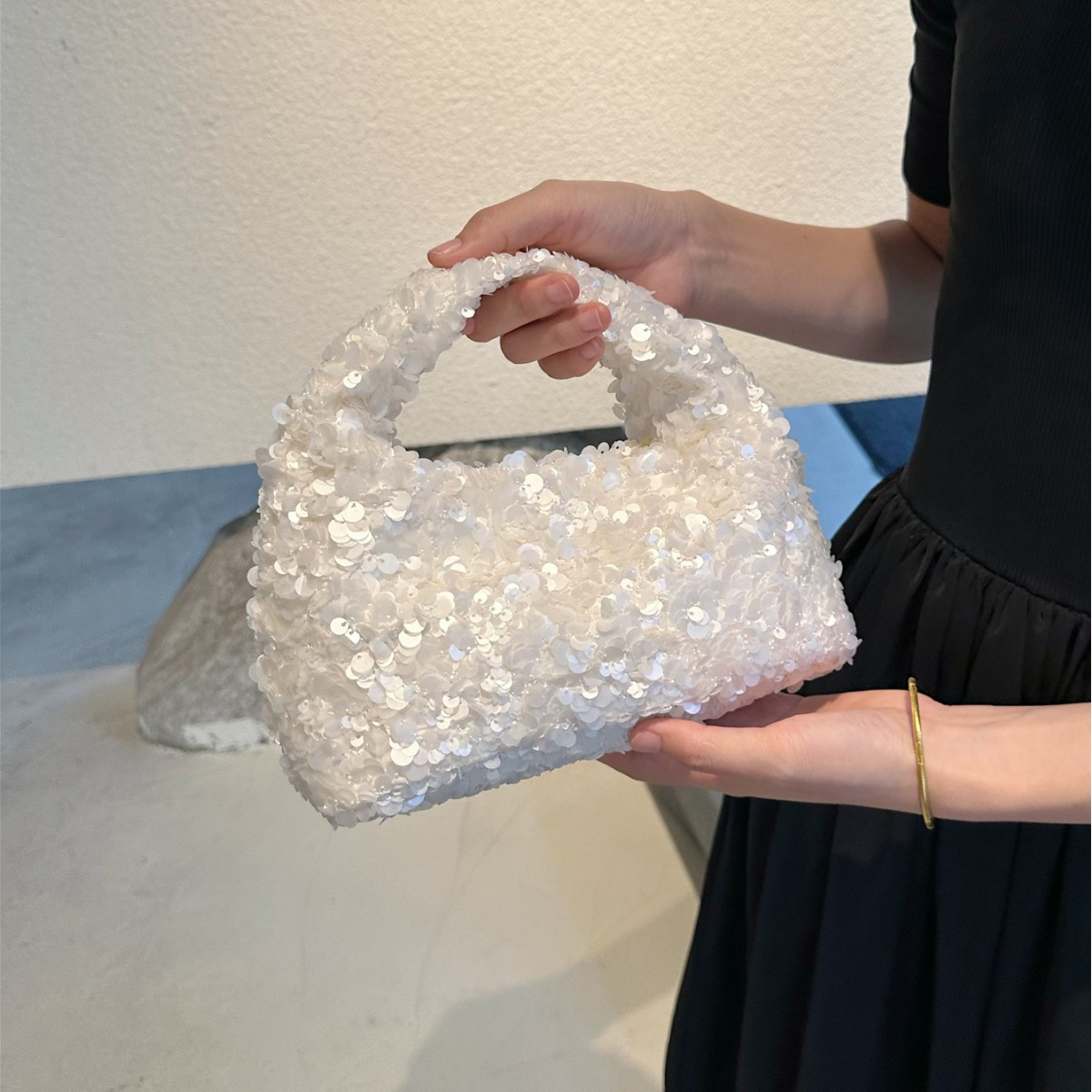 2024新型ネット紅同タイプのおしゃれなギャルのアルミのスパンコールの手でカバンを持っています。