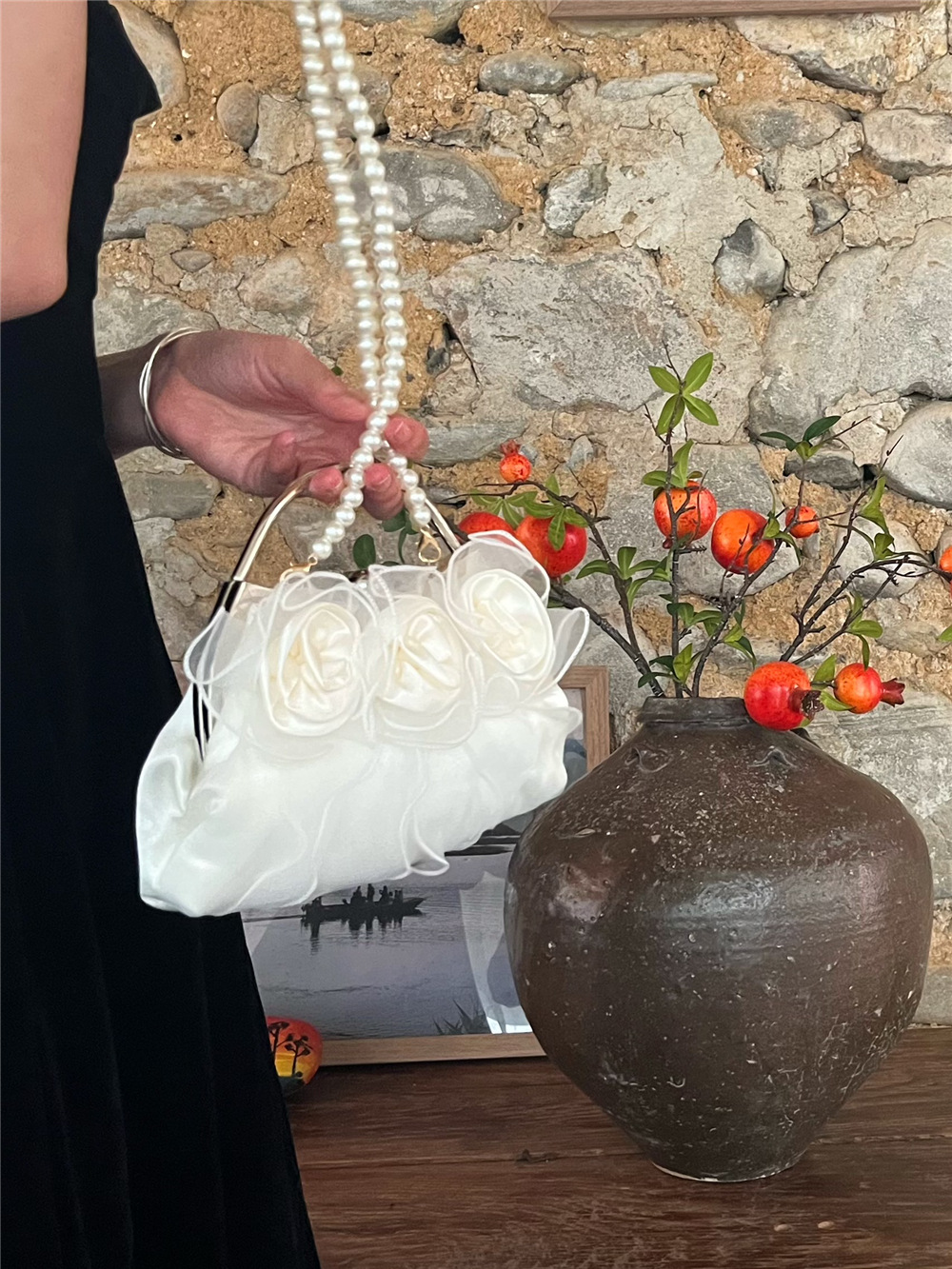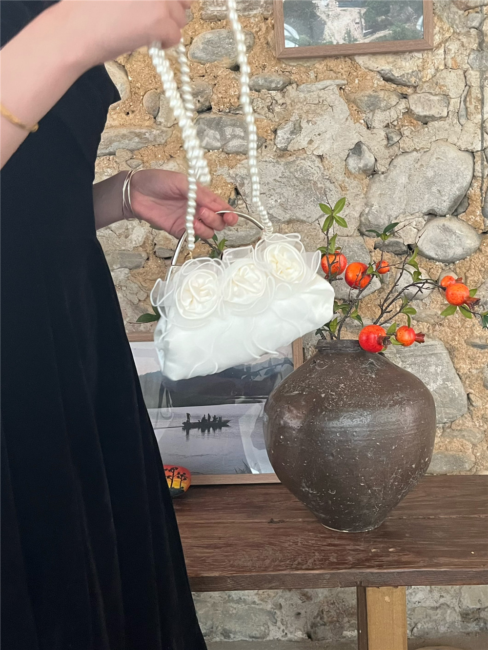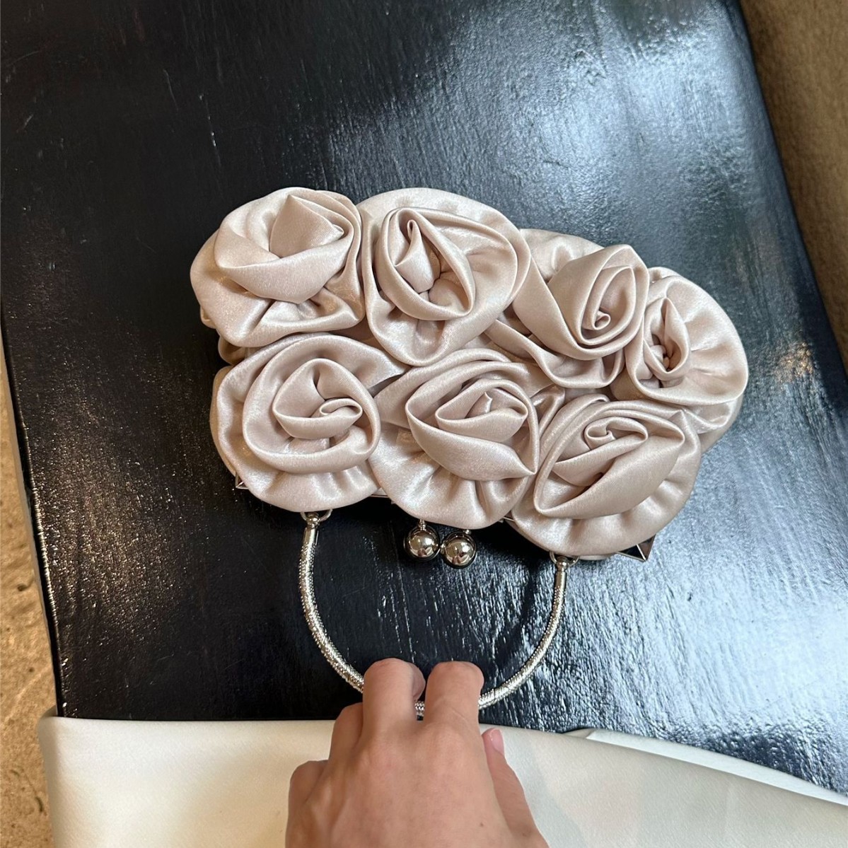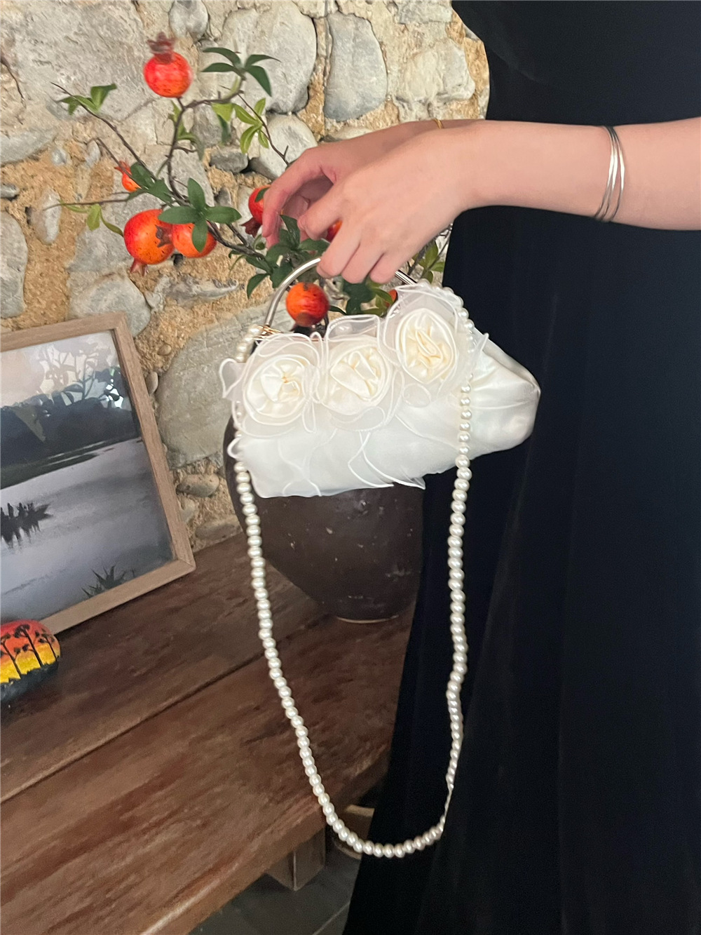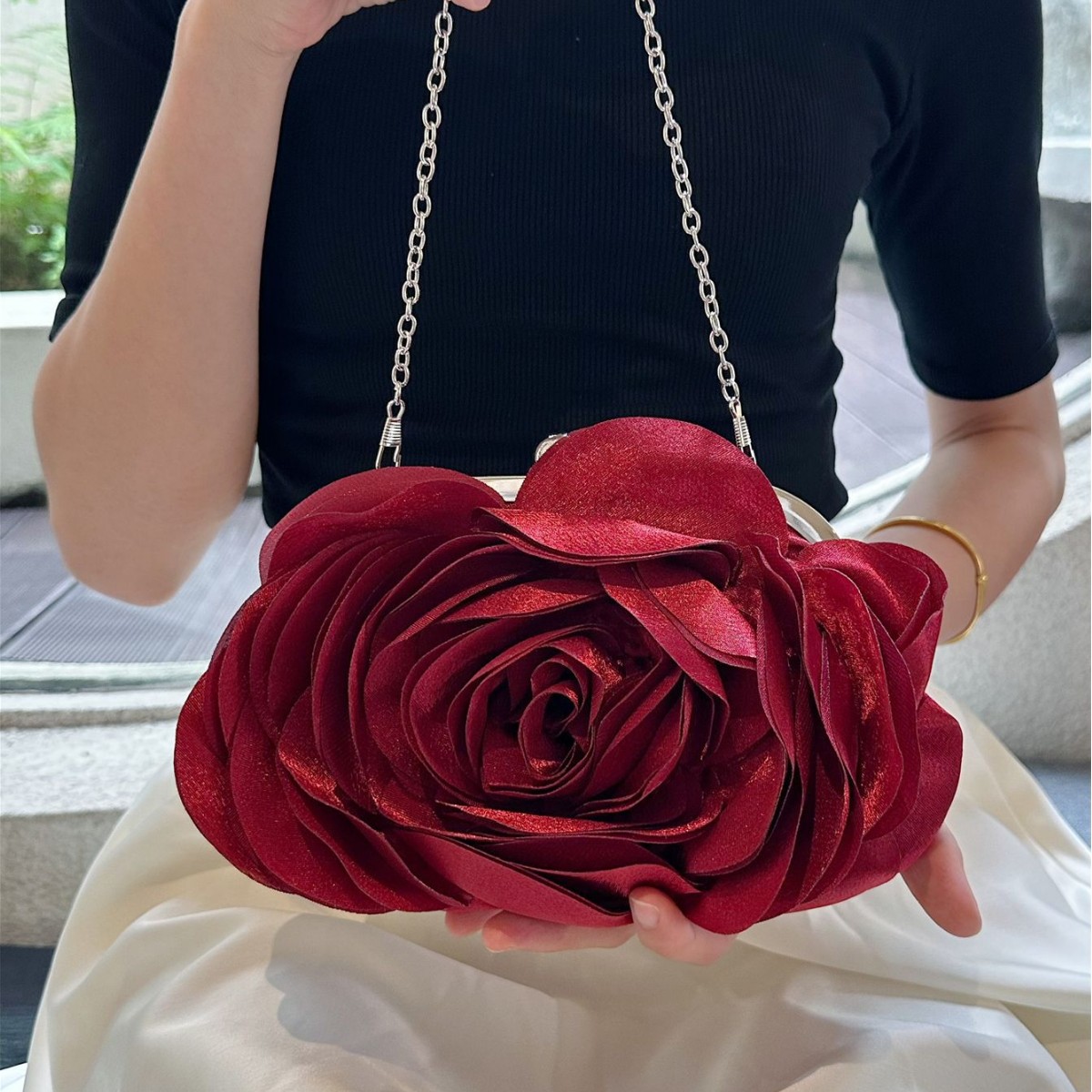 高級シフォン両面ローズブライダルバッグヴィンテージイブニングバッグセレブスタイルチャイナドレスバッグ