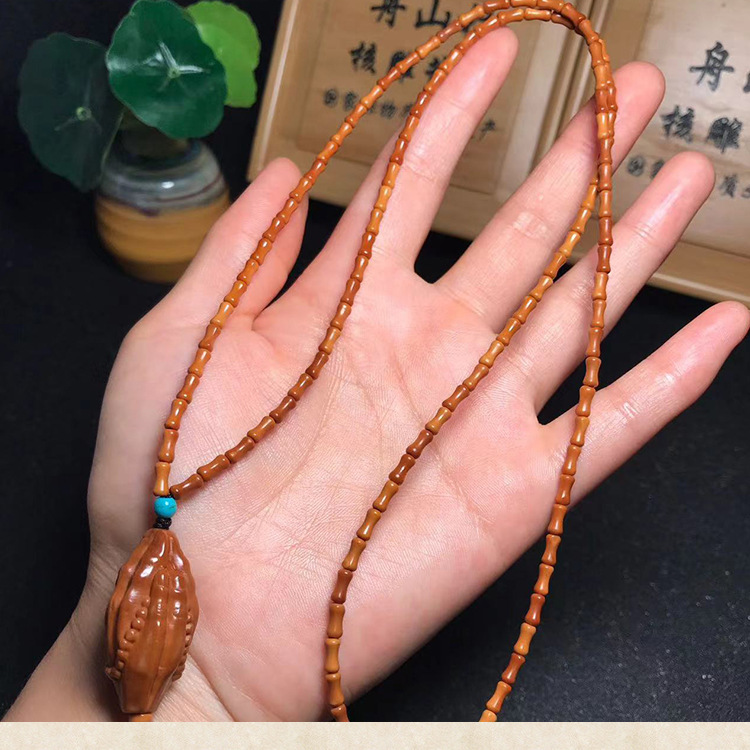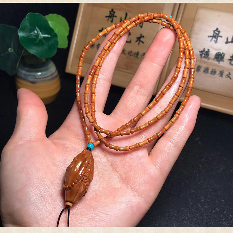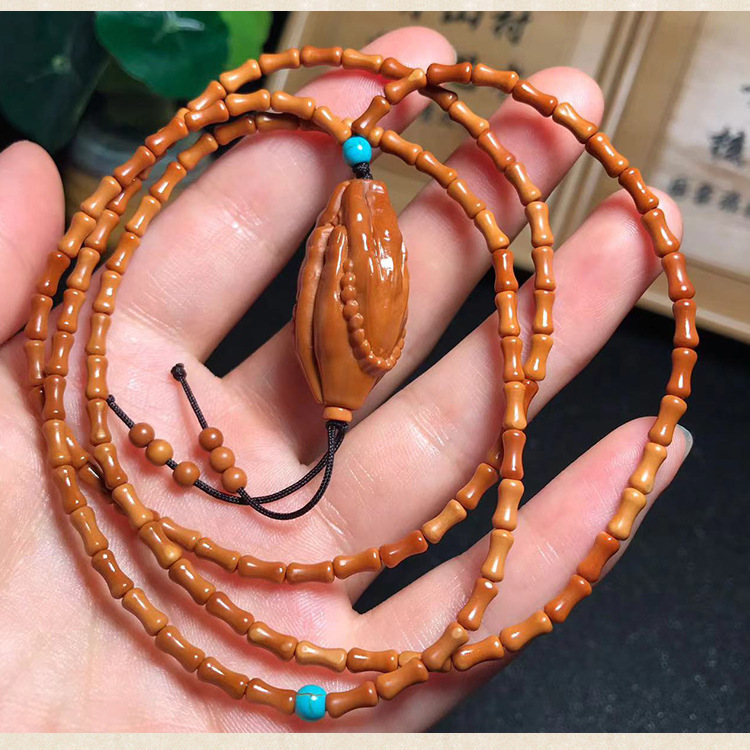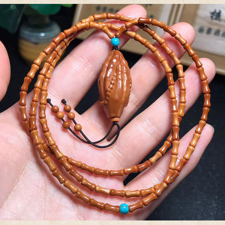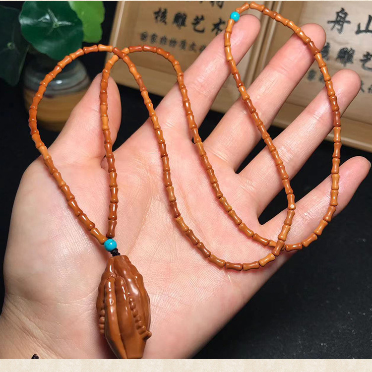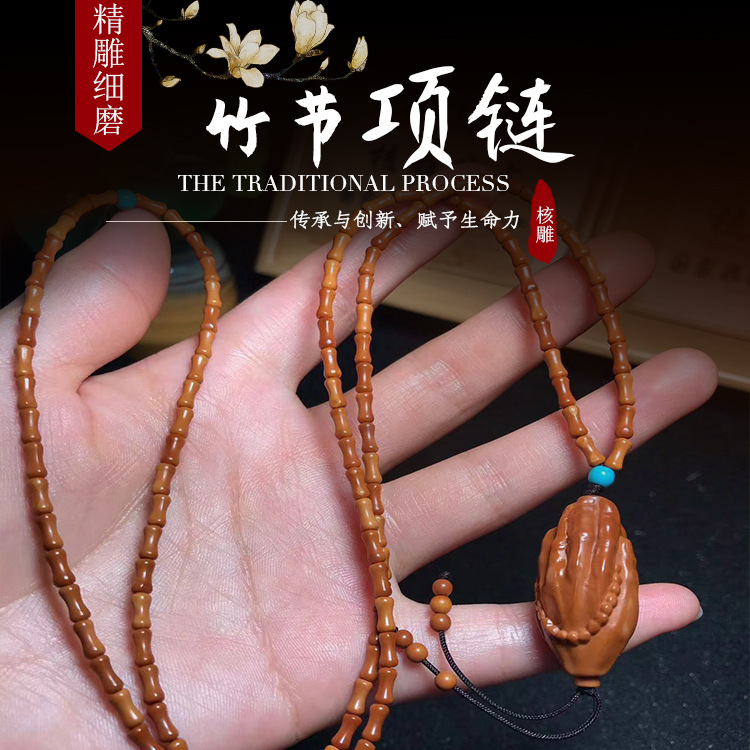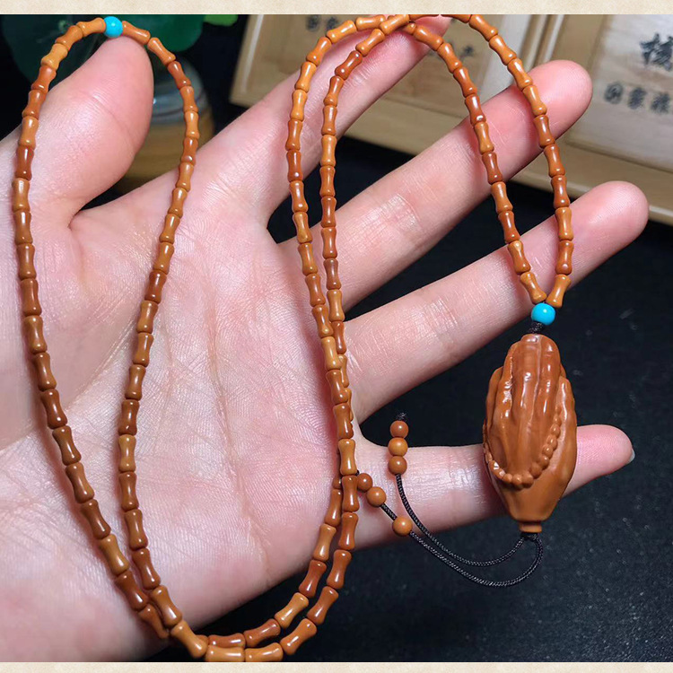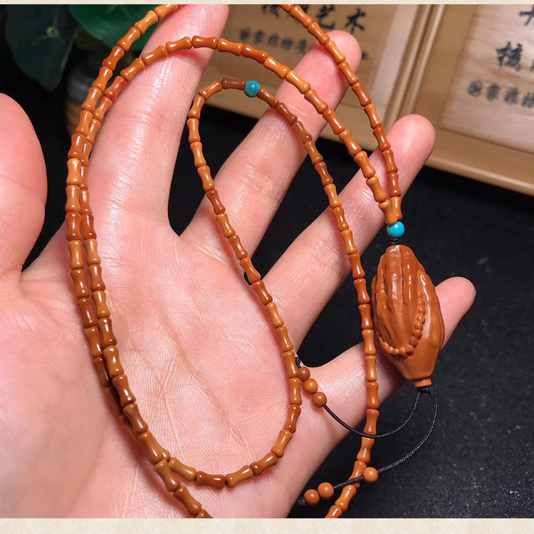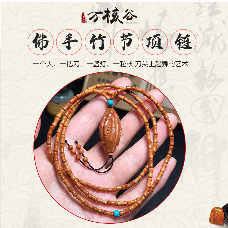 オリーブの核の仏手の竹の節のネックレスの逸品の古い油の核の首はオリーブの核の彫刻の仏手の文を掛けてチェーンの現物の卸売りを遊びます。