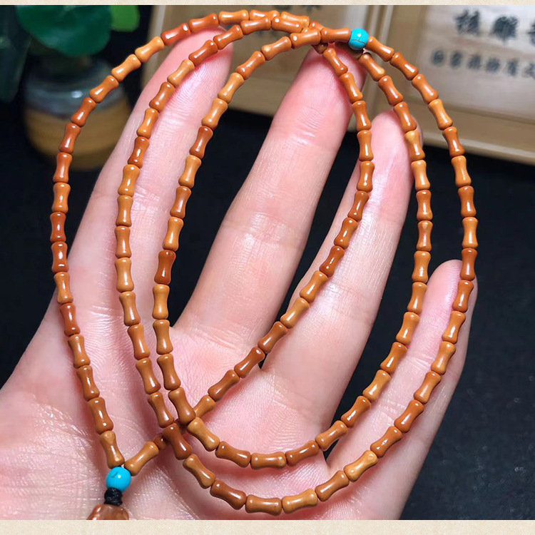 オリーブの核は一心に仏の首にセーターのネックレスを掛けます。