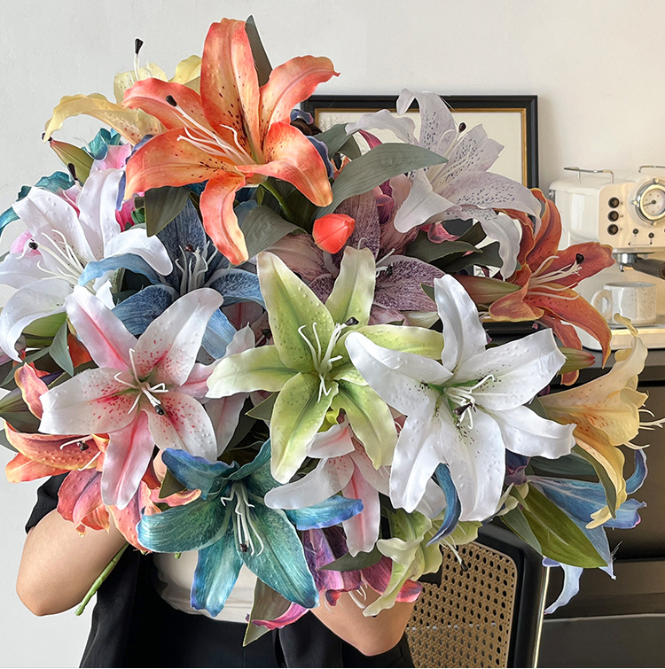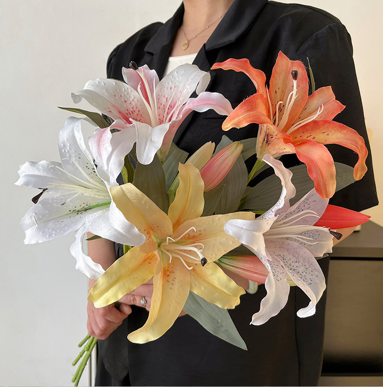 3d単輪一花一蕾百合シミュレーション花造花花花材置物家庭装飾ホテル布景影楼撮影