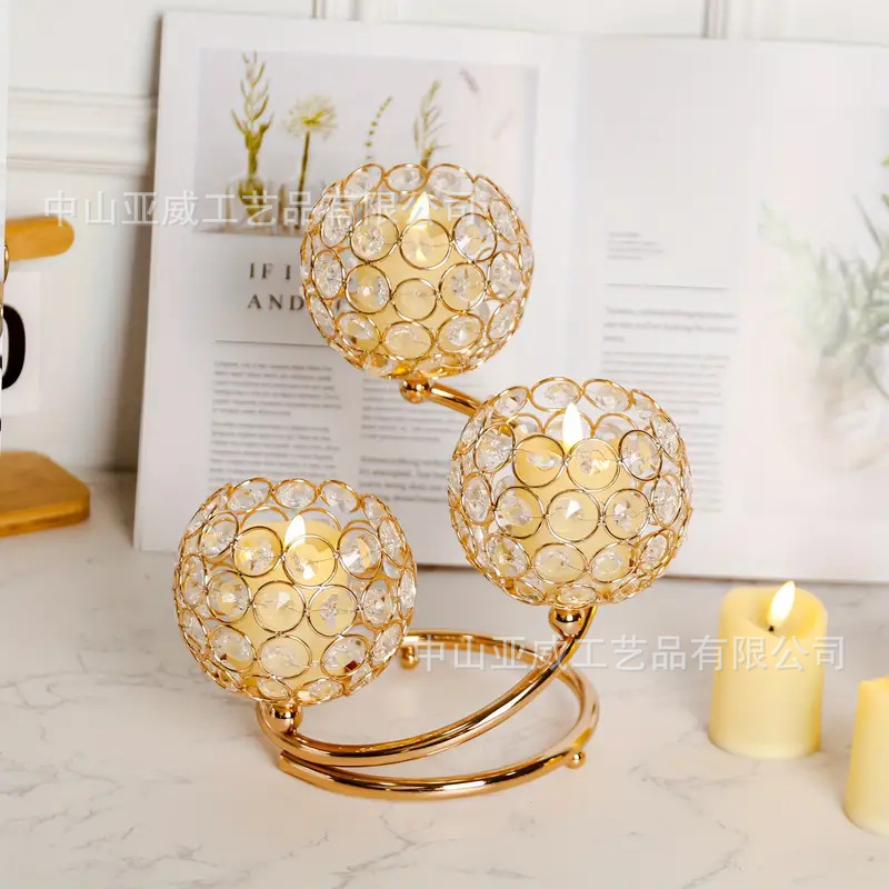 ヨーロッパのミニクリスタル燭台ダイニングテーブルレトロロマンチックなキャンドルライトディナー3点セットウェディングゴールデン燭台メーカー