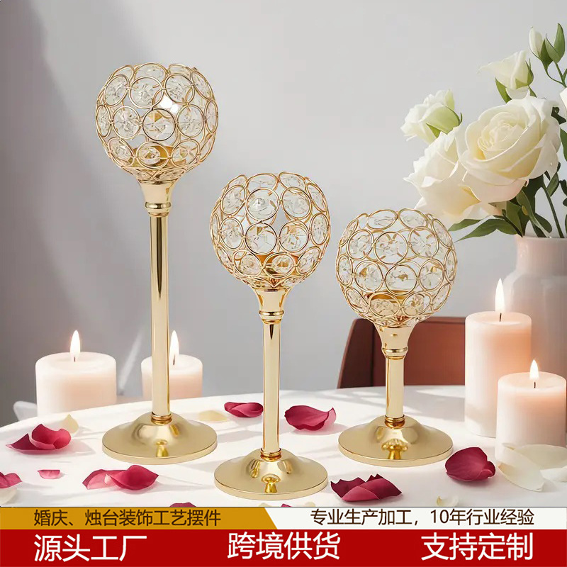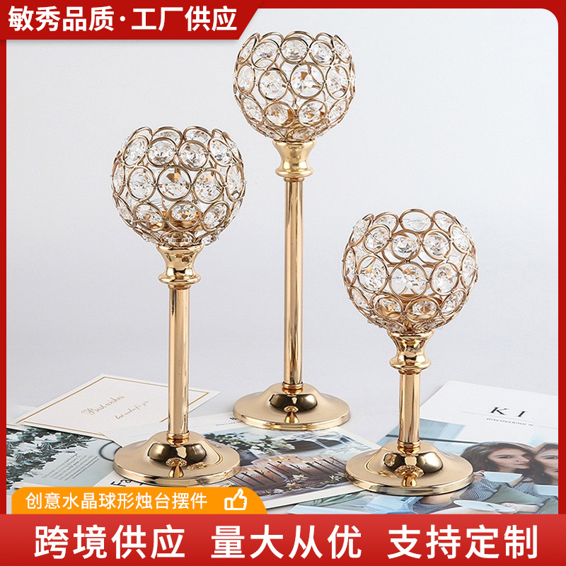 跨境亚马逊创意水晶球形烛台摆件聚会派对婚庆家居烛光晚餐装饰品