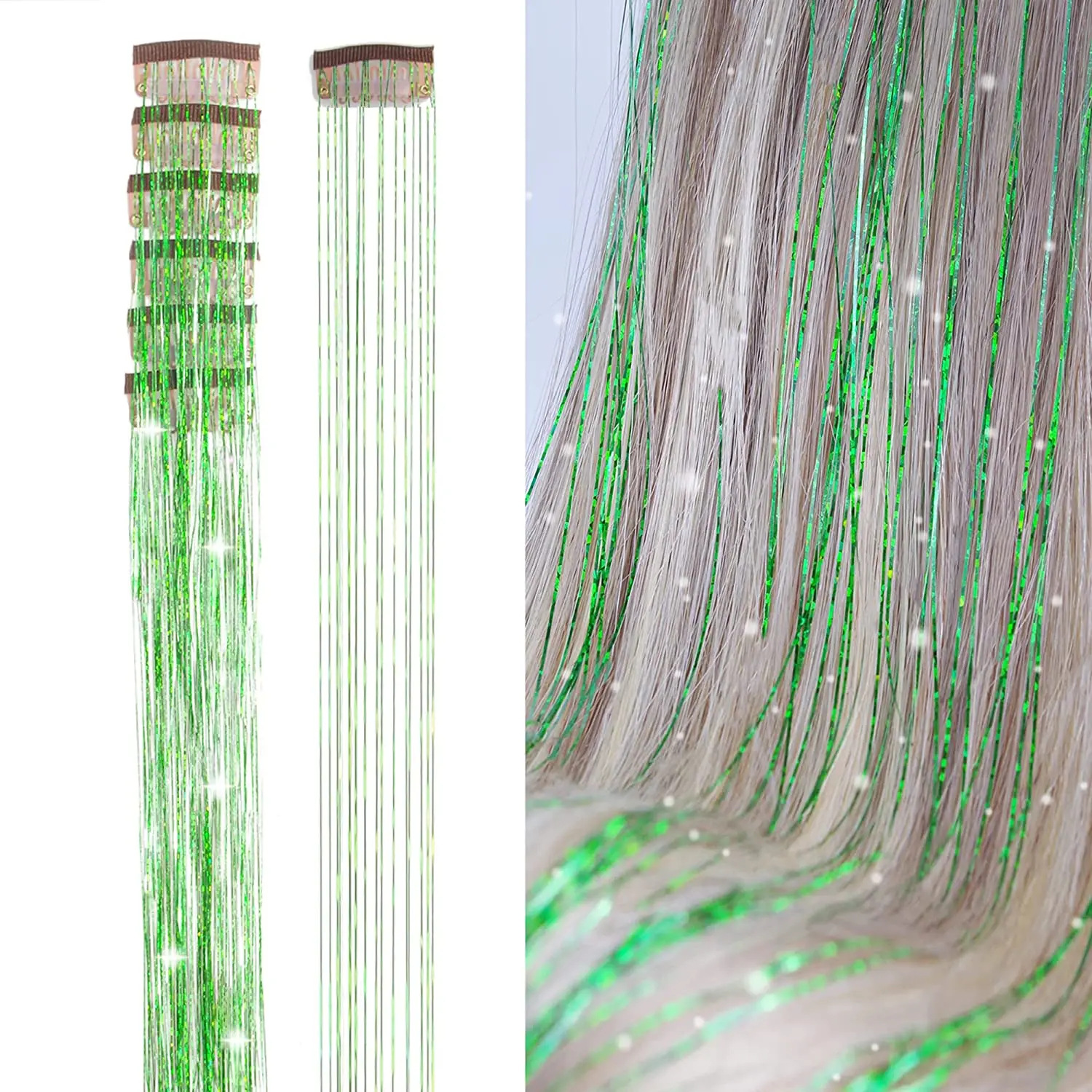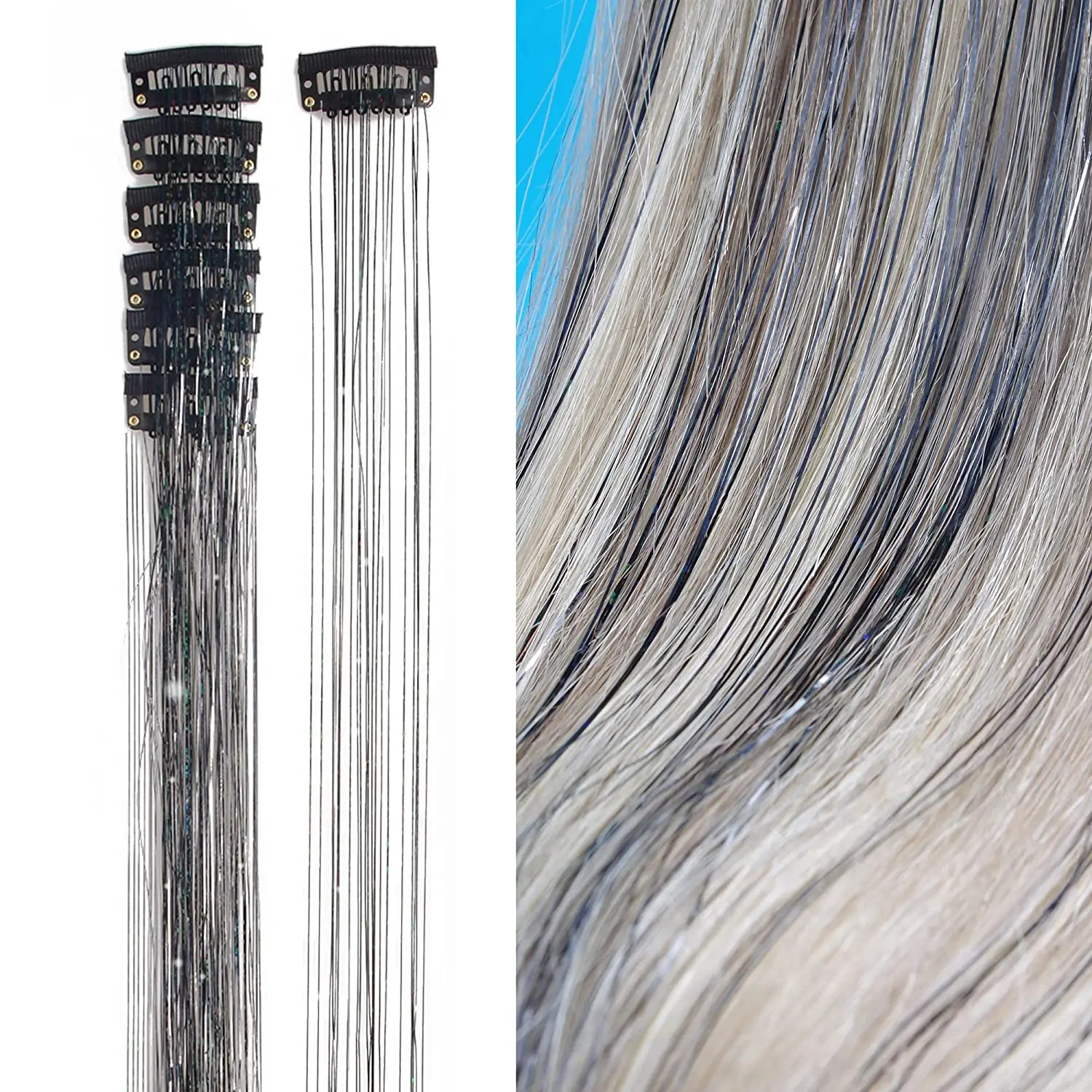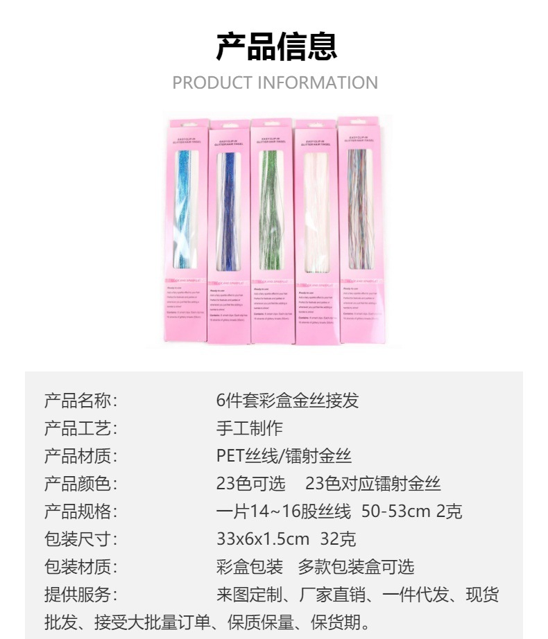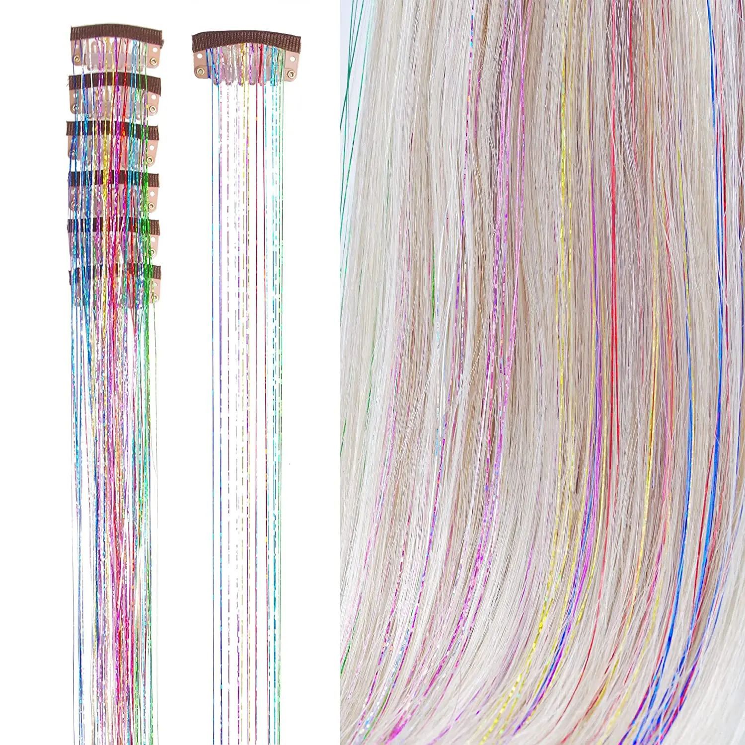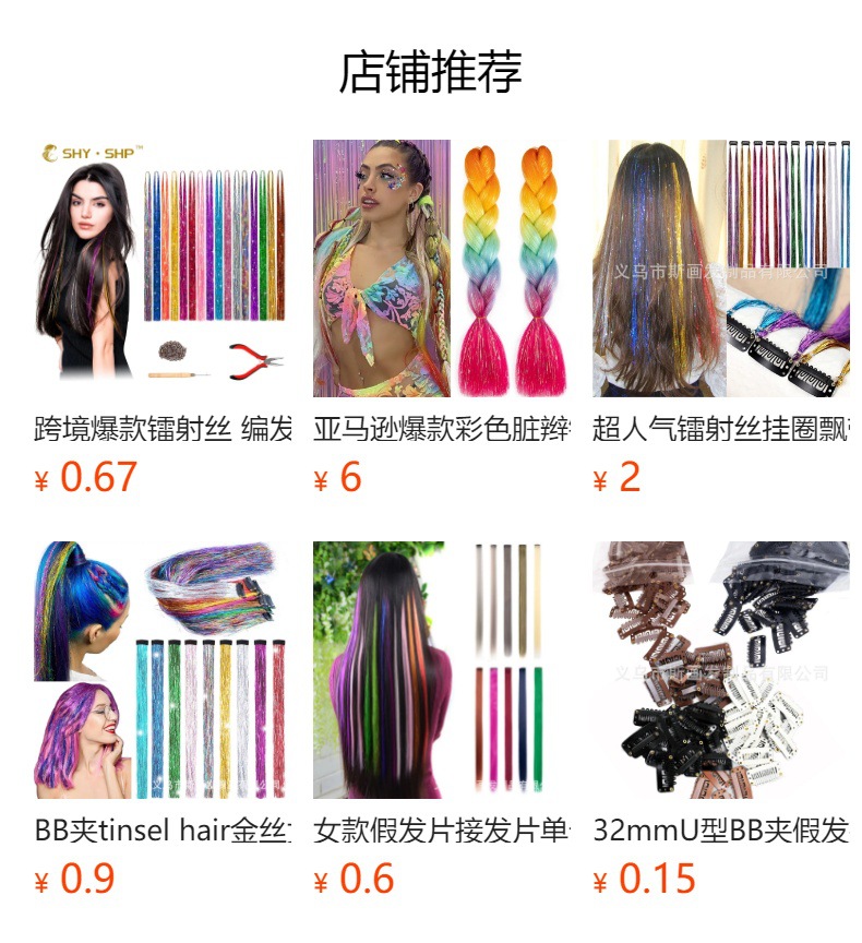 アマゾンクロスボーダー欧米金属リボンクリップレーザー金糸tinsel hair七彩かつらメーカー