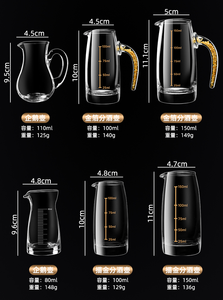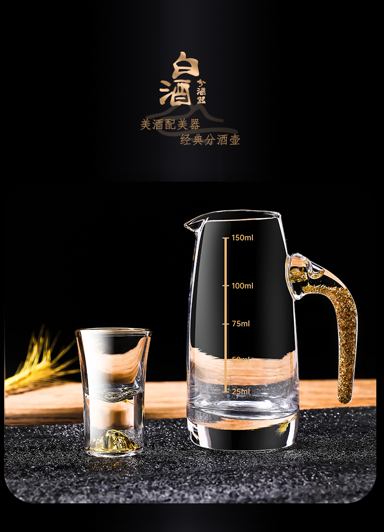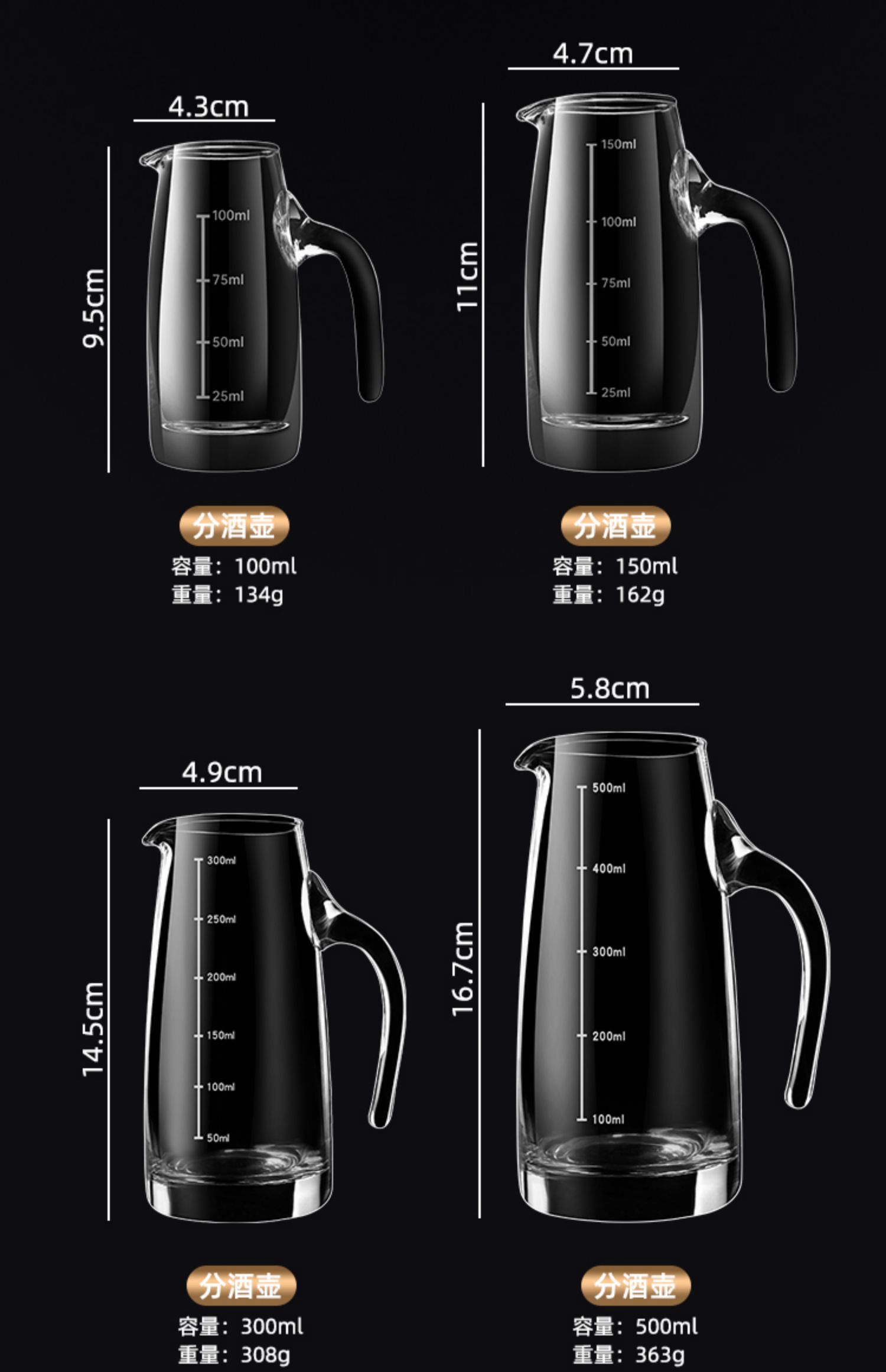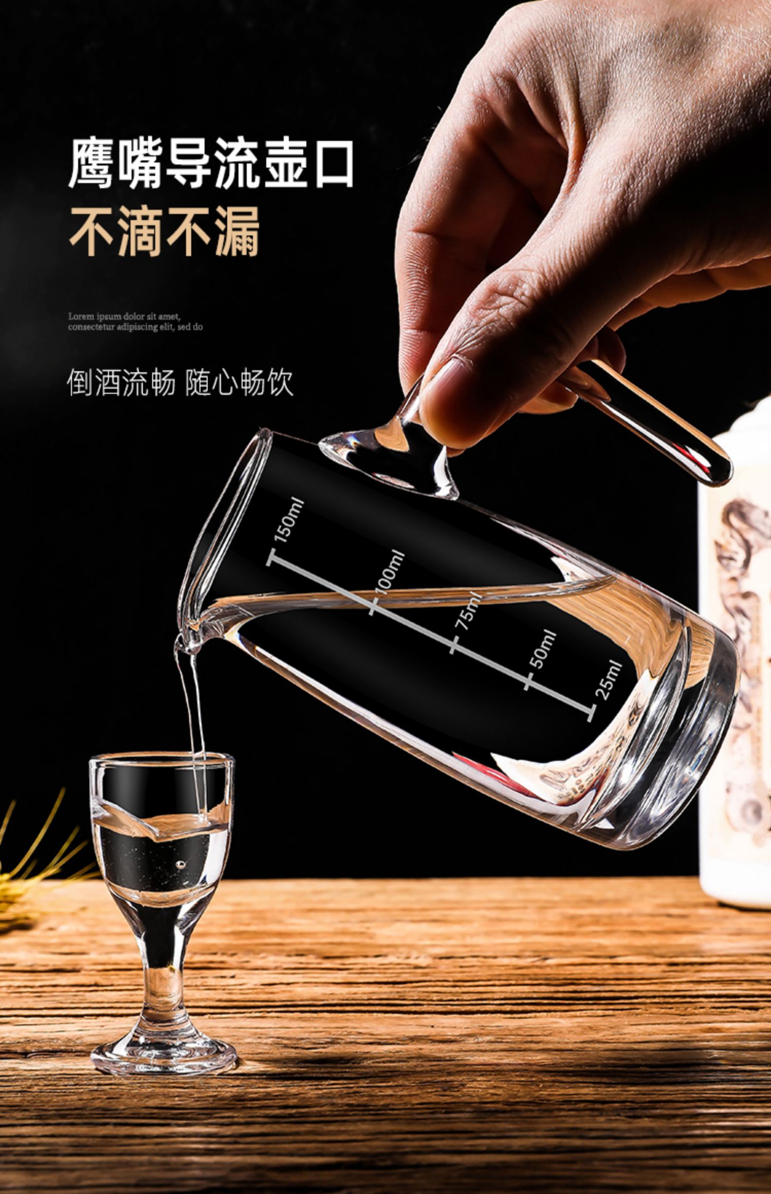 V45Oガラス分酒器白杯家庭用スケール付き小酒壺100mlホテル商用公道