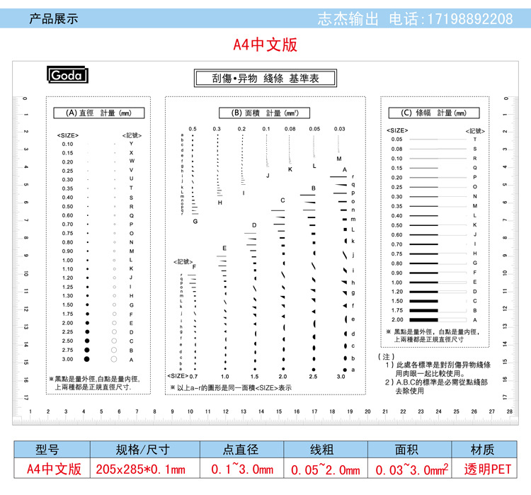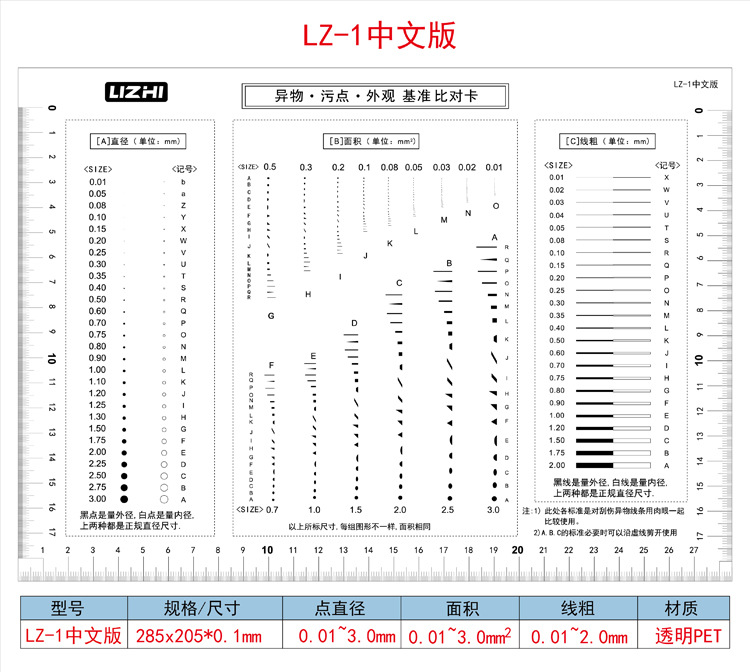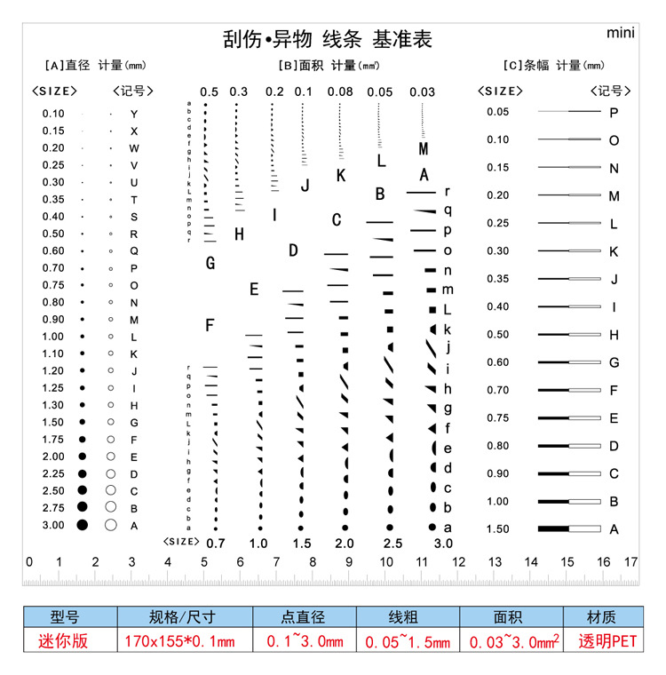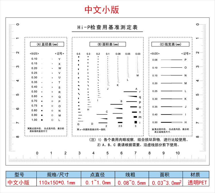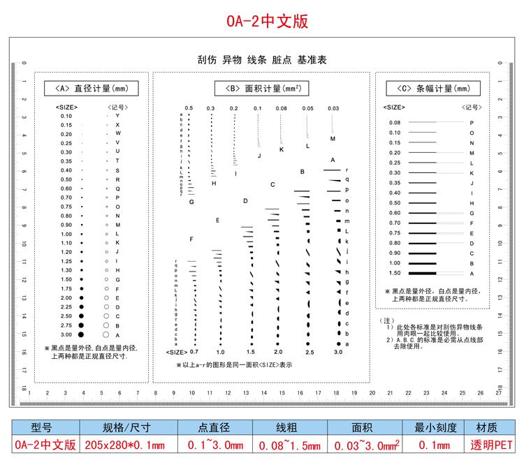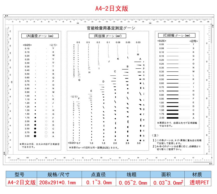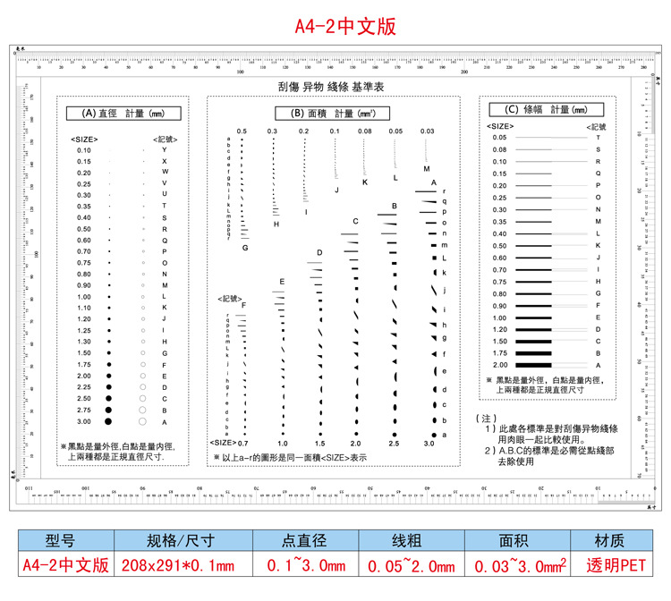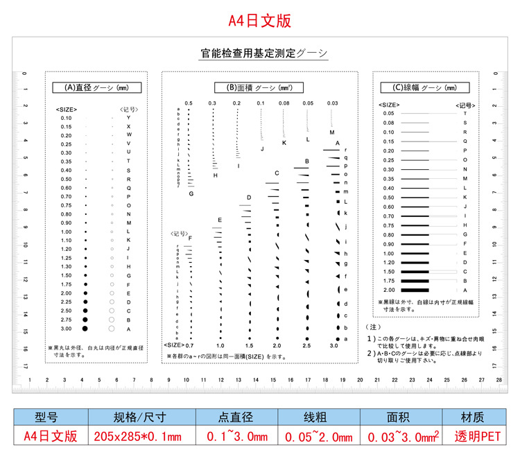 汚点カード標準点線規菲林尺比カード外観検査規傷異物カードa 4