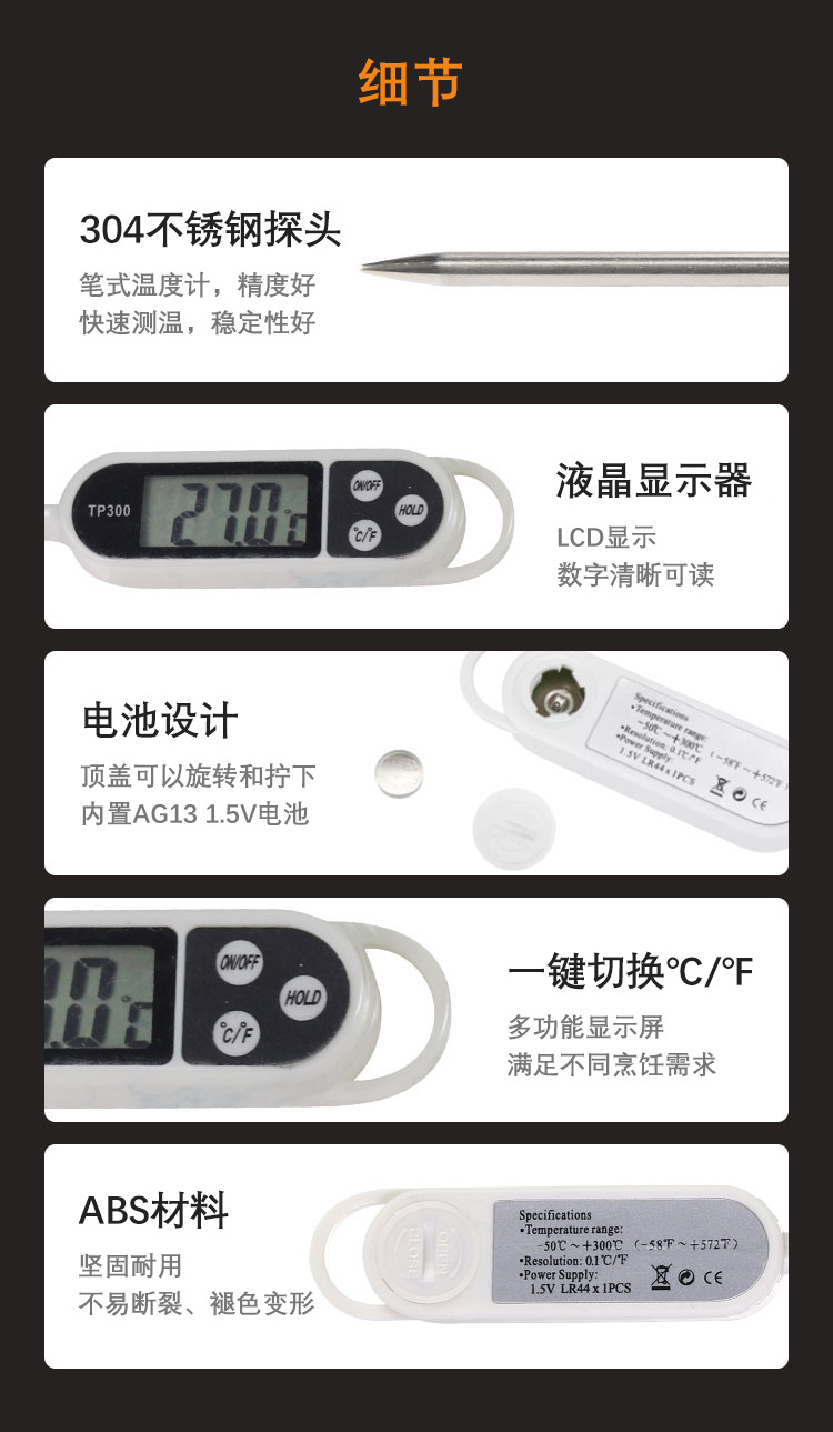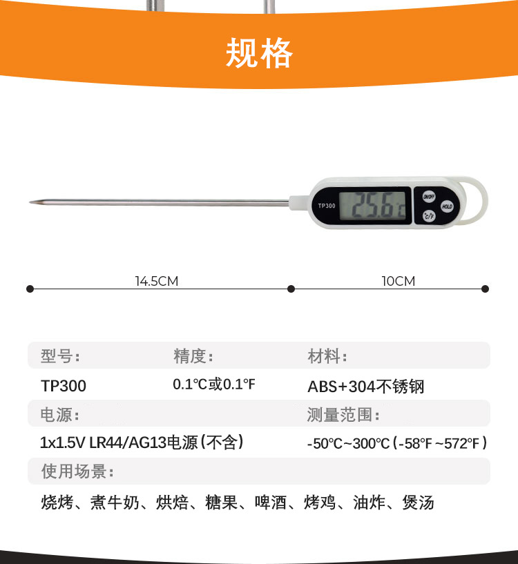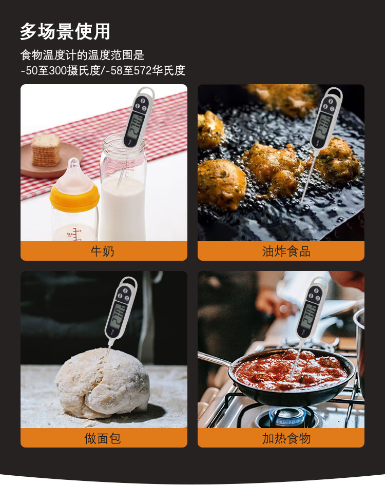 测量范围:水温、食品、液体、膏体、油温、奶温、茶、汤类、啤酒等等