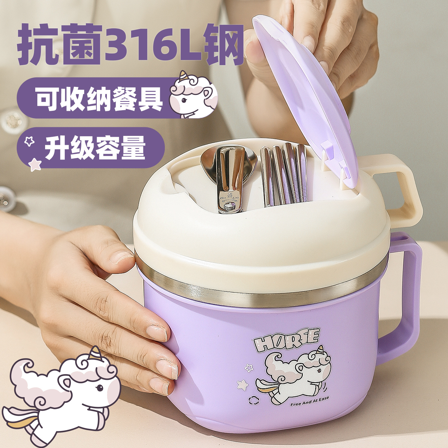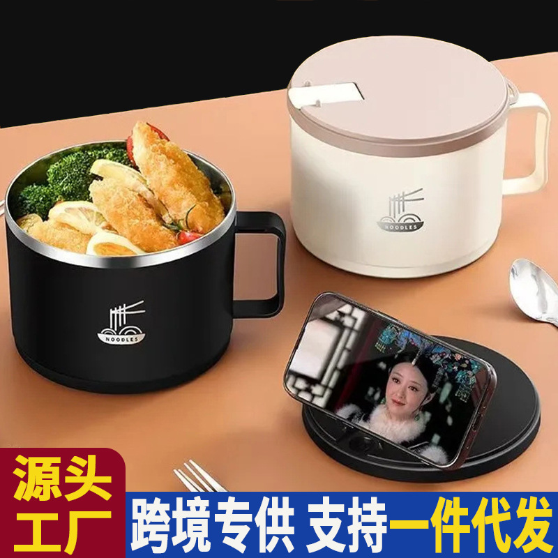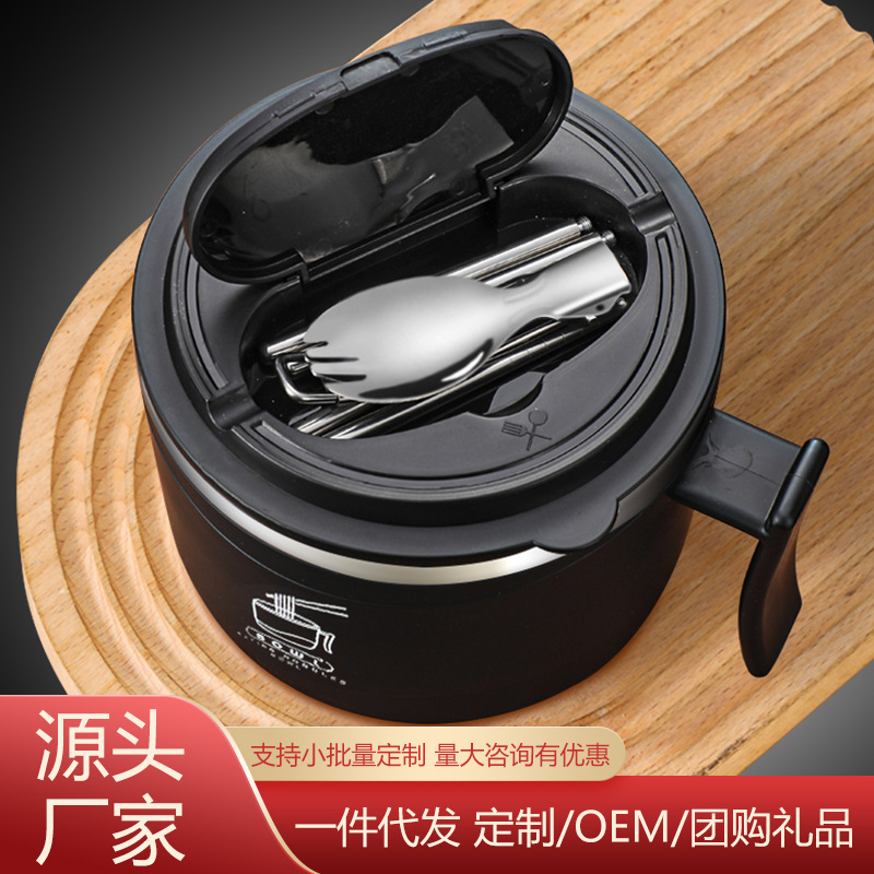 304 ステンレス鋼の蓋付き断熱密封ポータブル学生ファーストフードカップ食器日本のランチボックスランチボックスインスタントラーメンボウル