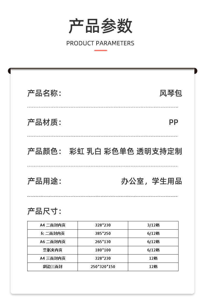 義烏文房具工場はppプラスチック12/8/6格オルガンバッグ内胆b 5/a 4/fc多規格環境保護内ページを提供している