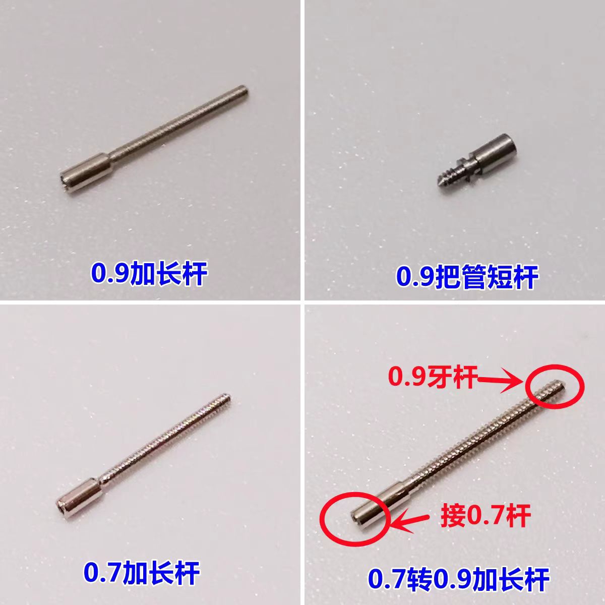 腕時計の引継部品の延長レバーの芯を持ってきてからレバーをつないでください。0.7/0.9歯のネジです。
