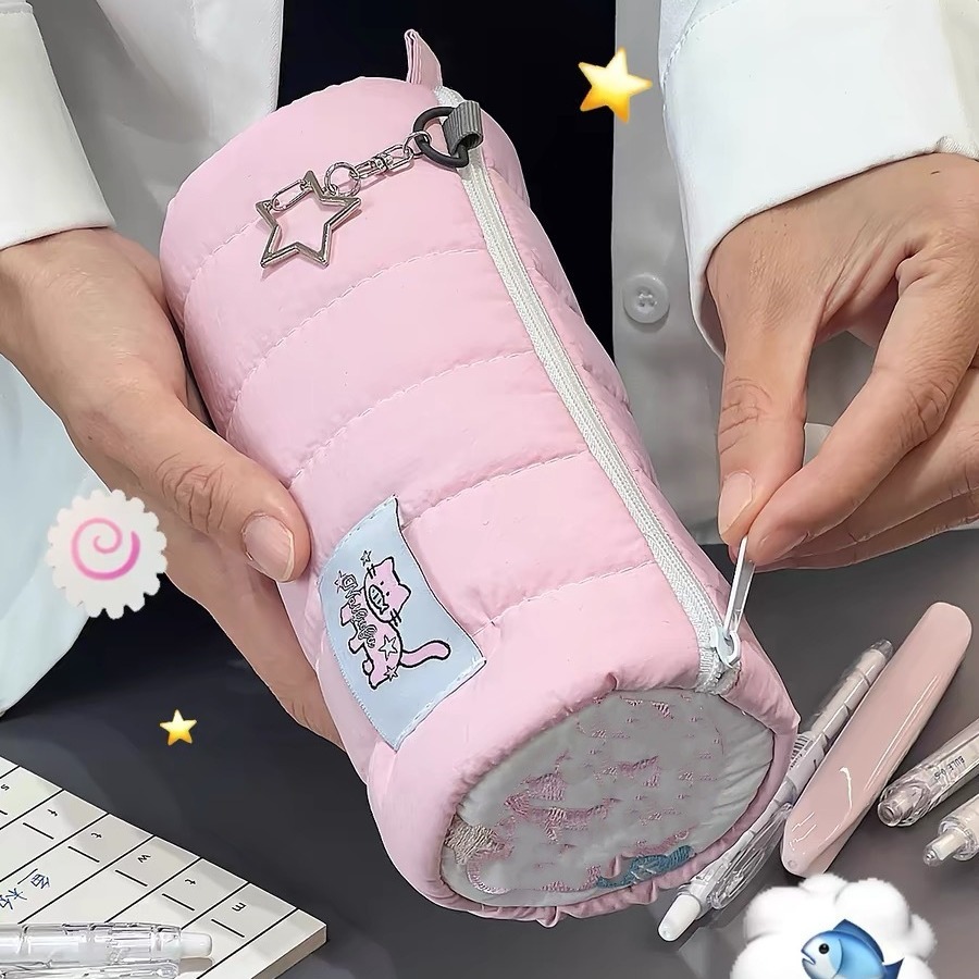 日本製魚板粉猫ペンバッグ高価値かわいい化粧品バッグ学生文具バッグ超大容量収納袋
