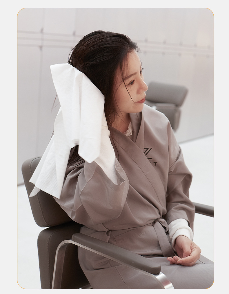 使い捨てタオル美容院専用の厚手を大きくして、理髪店で頭巾を拭きます。