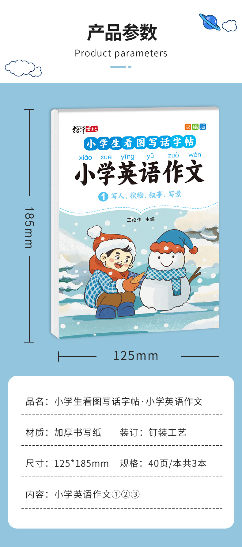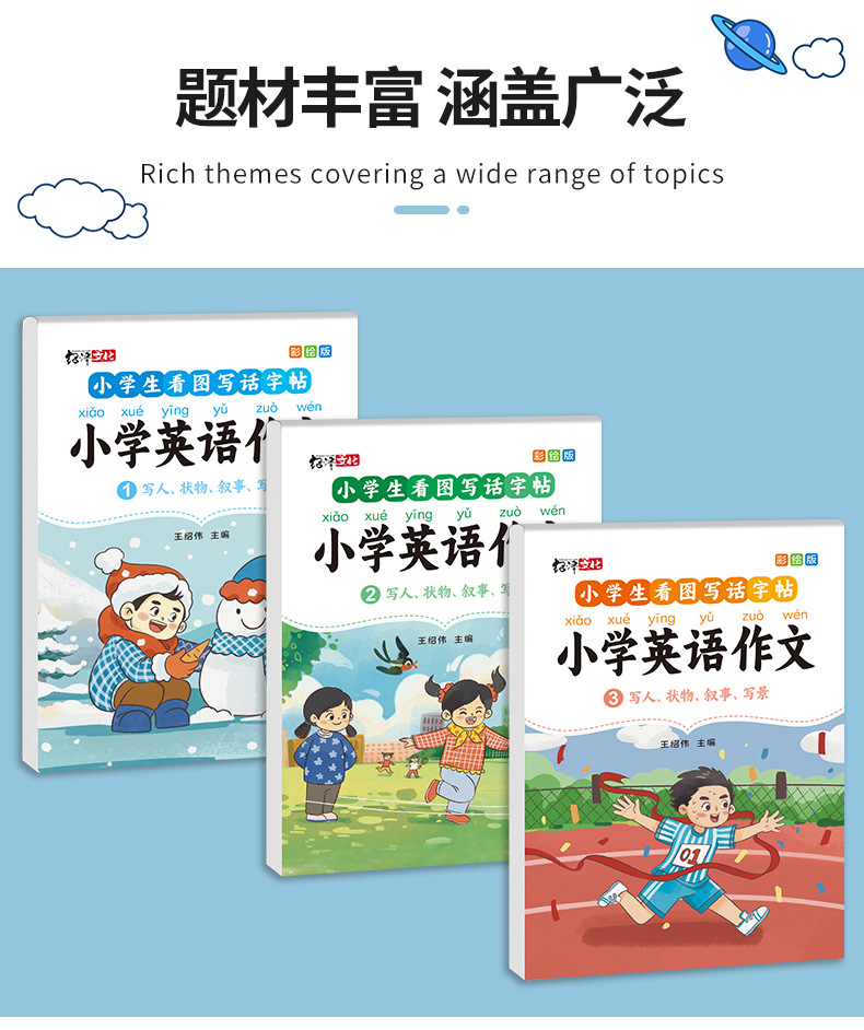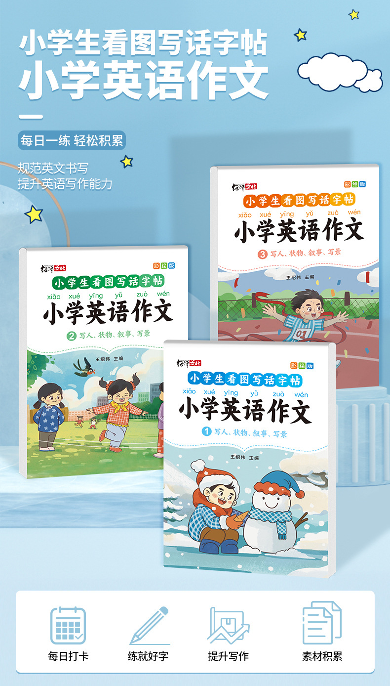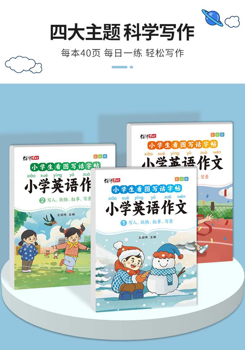 小学生は図を見て話を書きます。英語の作文は啓蒙します。