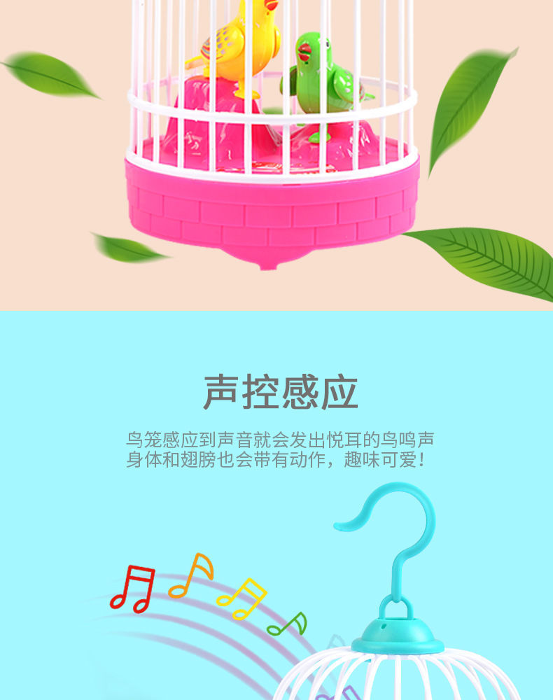 学舌声控感应鸟笼灯光电动仿真小鸟叫声儿童户外景点地摊玩具