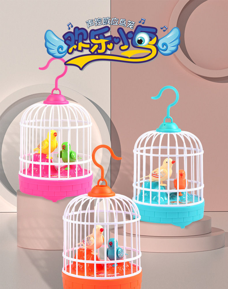电动声控鸟笼小狗笼灯光仿真叫声儿童户外地摊玩具