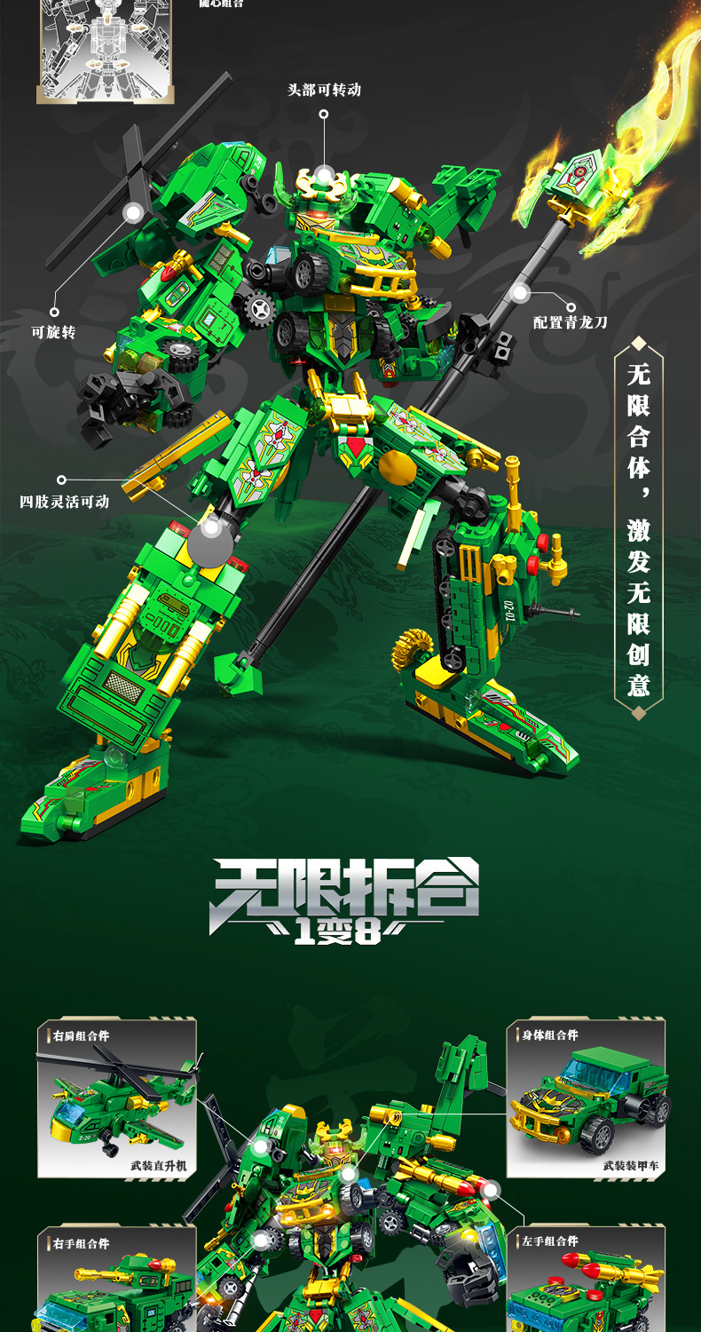森宝積み木関羽趙雲周瑜鋼鉄変形機甲互換レゴボーイ盛り合わせ積み木玩具プレゼント