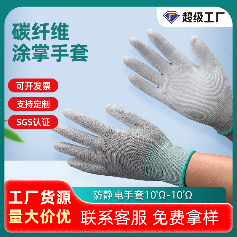 炭素繊維塗装手袋puナイロン塗装手袋コア電子工場静電気防止労働保護手袋メーカー卸売り