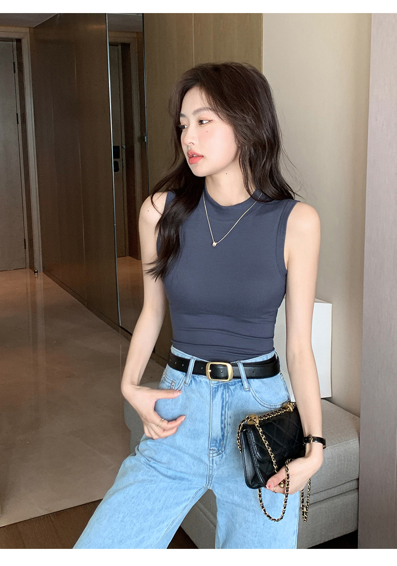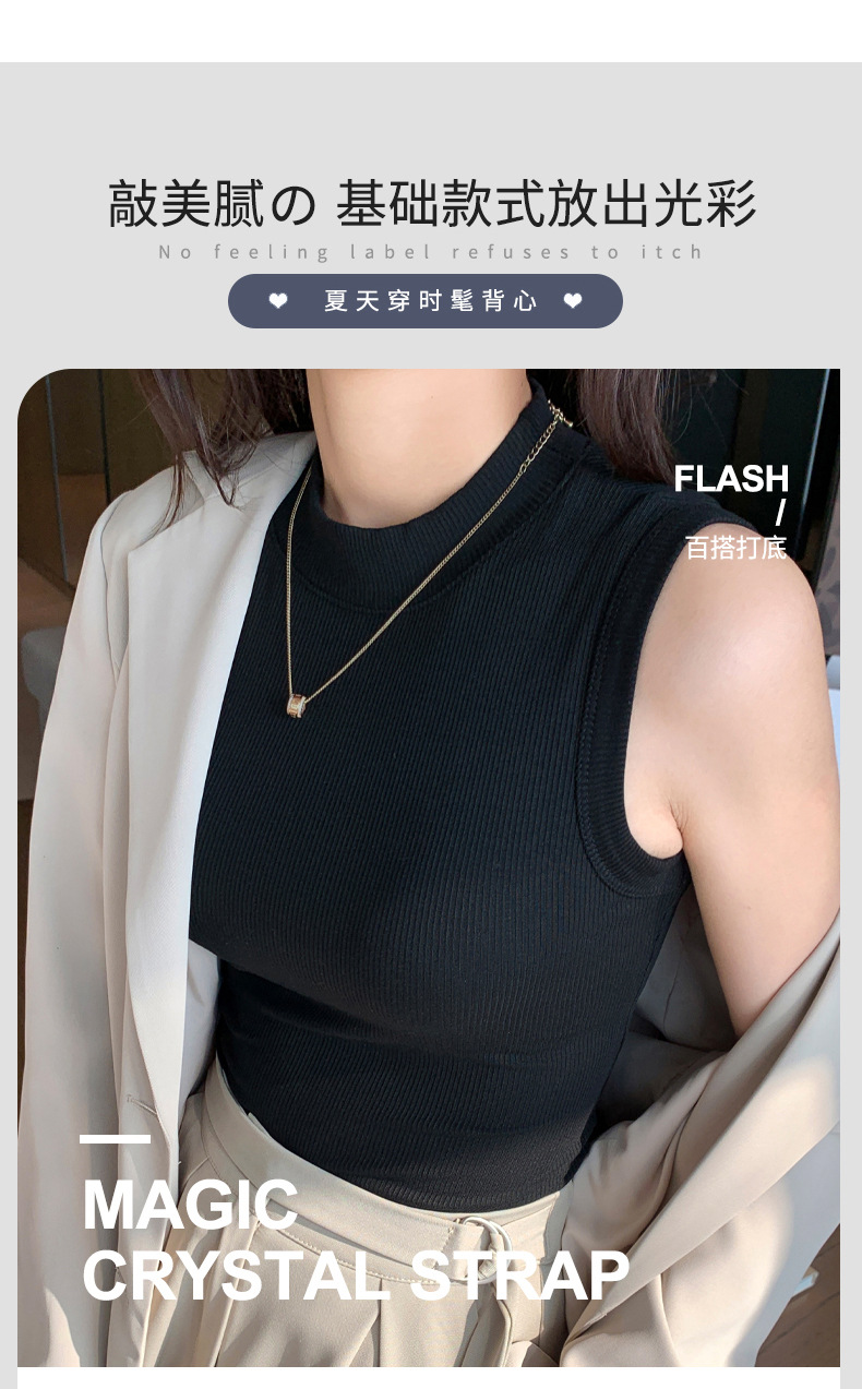 2025早秋新款半高领无袖纯色打底衫百搭时尚外穿打底无袖背心6008