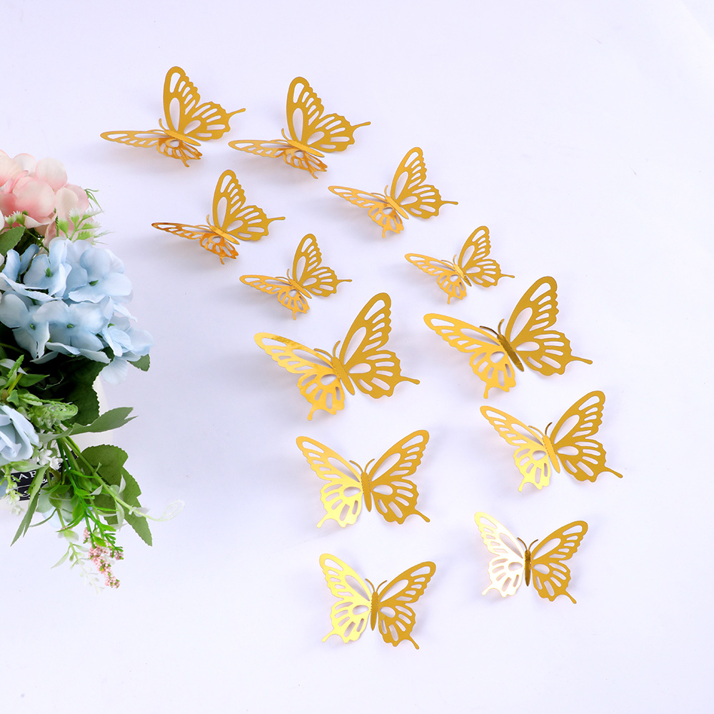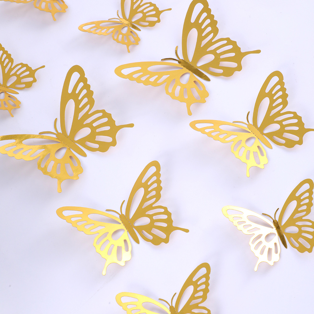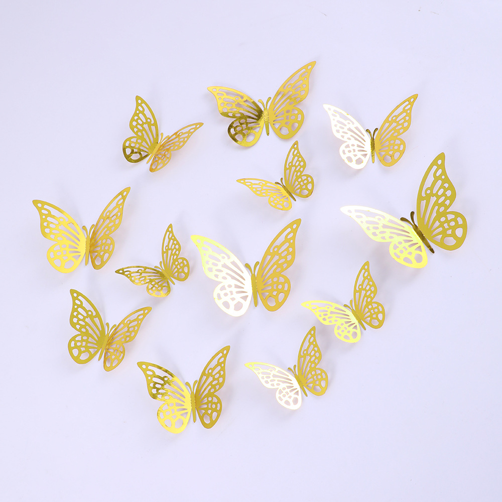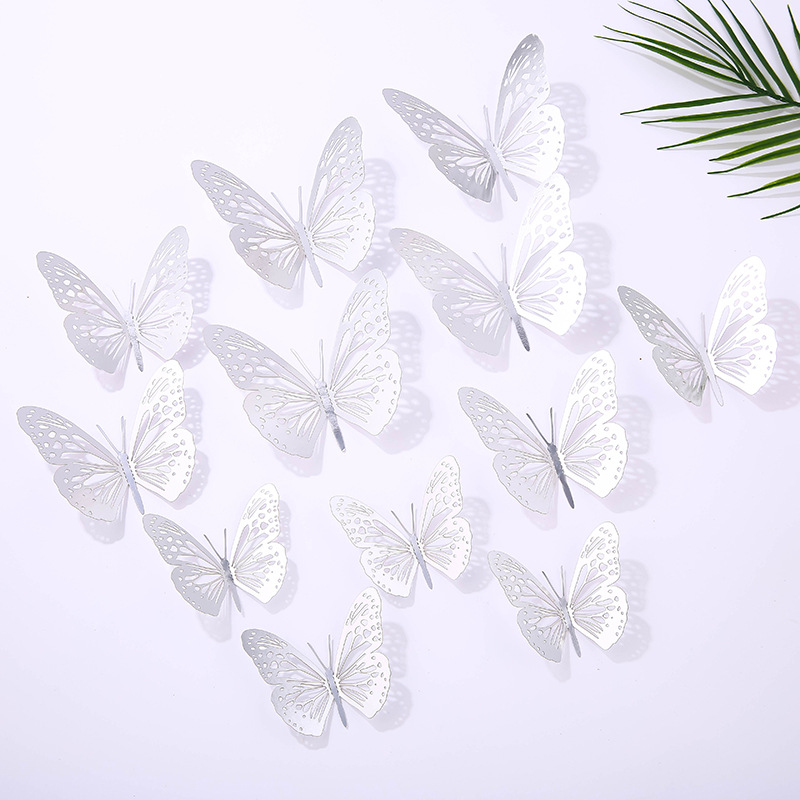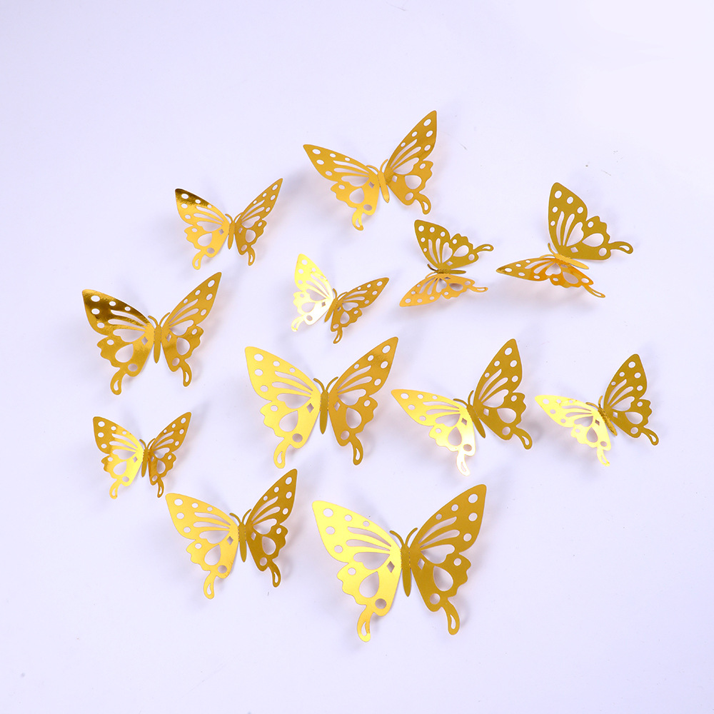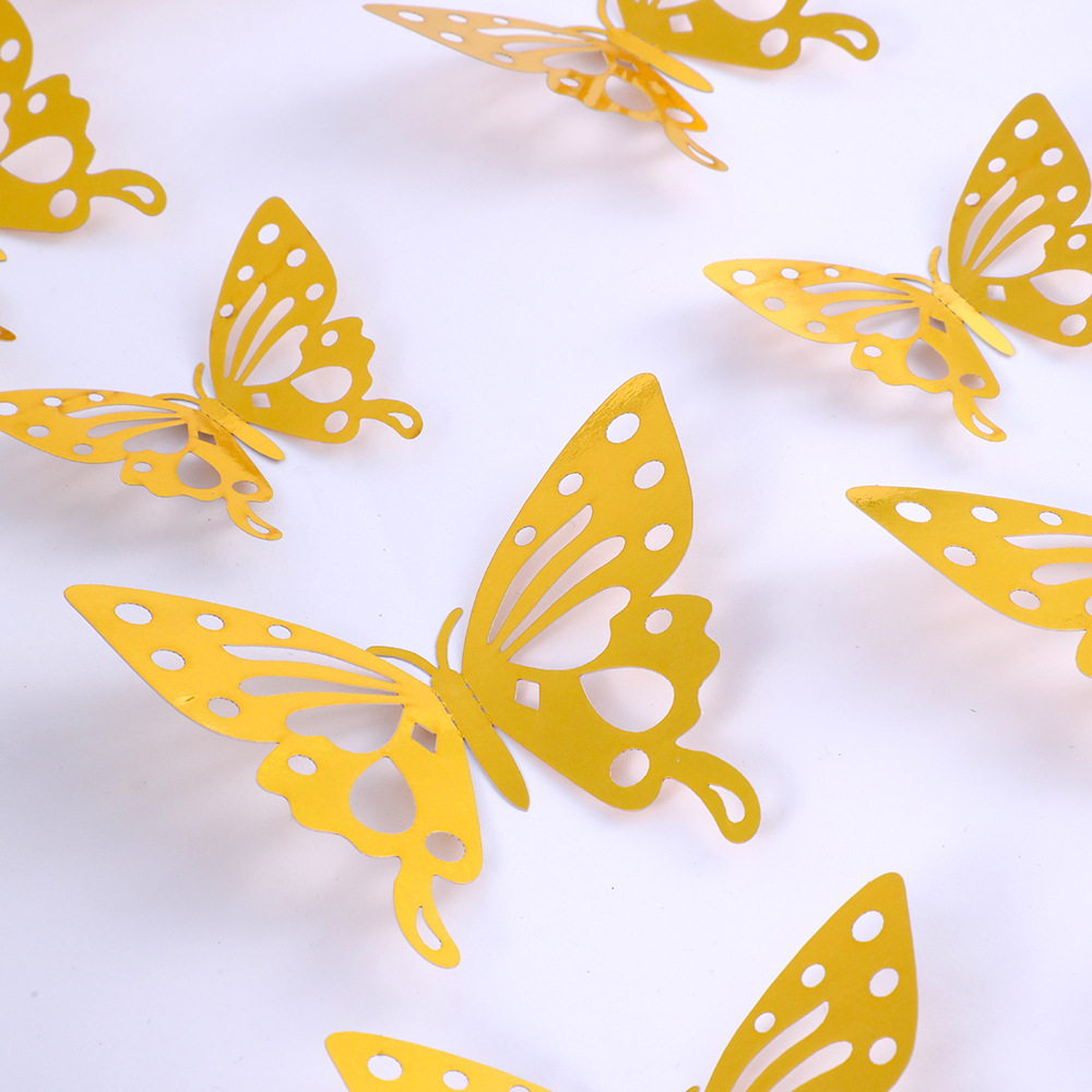 12個の立体透かし彫り蝶壁紙シミュレーション金属質感蝶壁シールパーティー壁面装飾