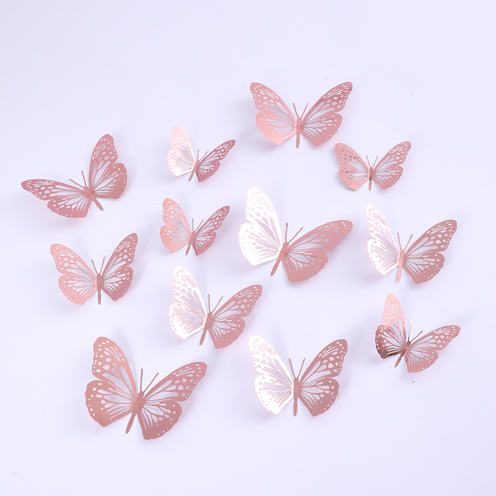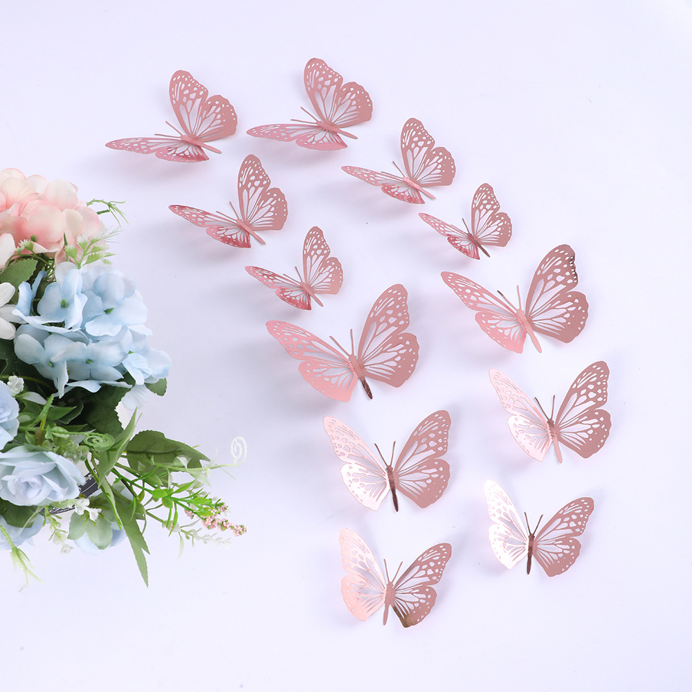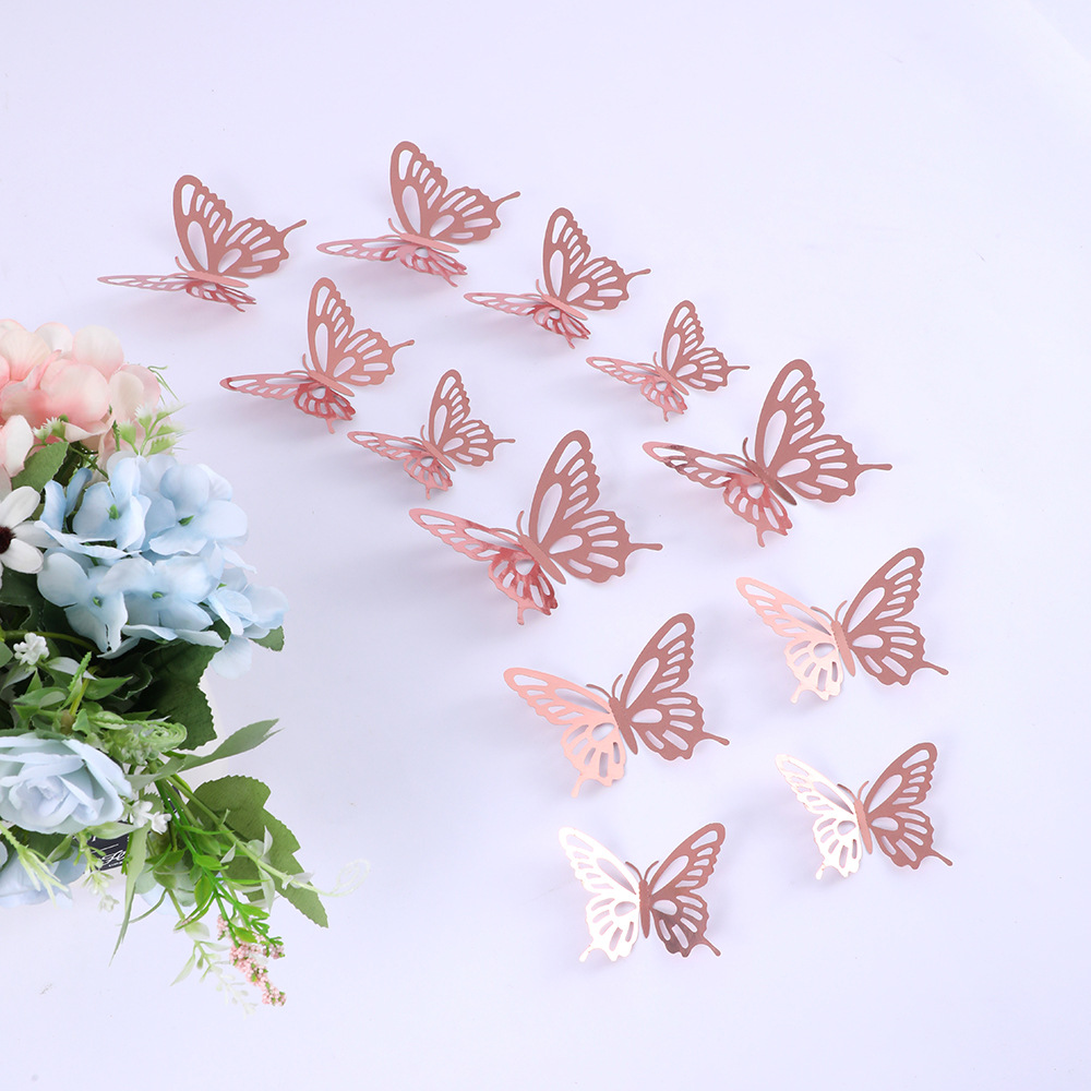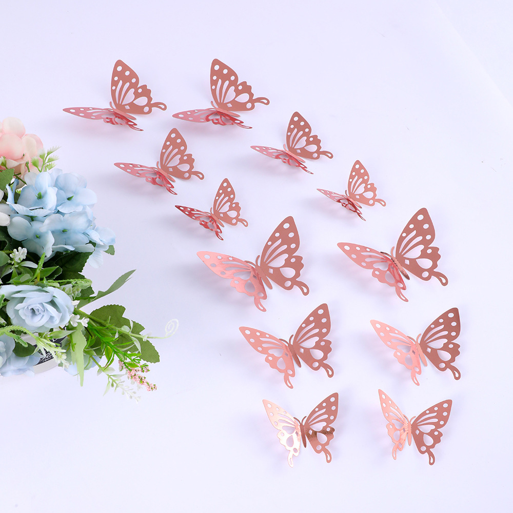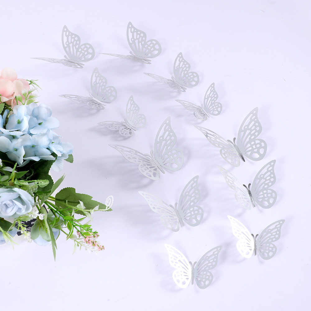 12個の立体透かし彫り蝶壁紙シミュレーション金属質感蝶壁シールパーティー壁面装飾