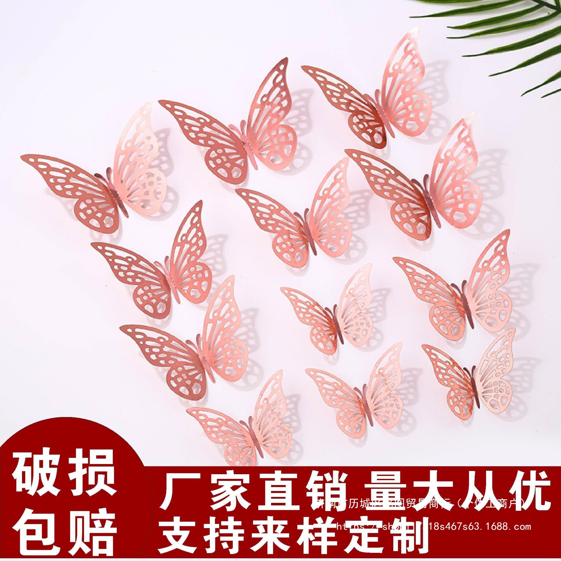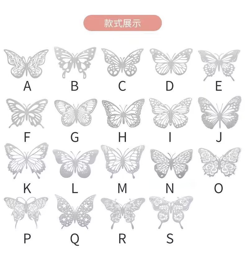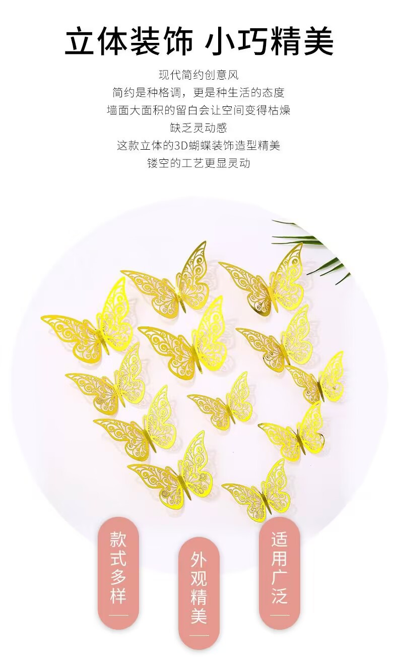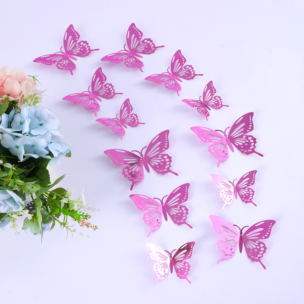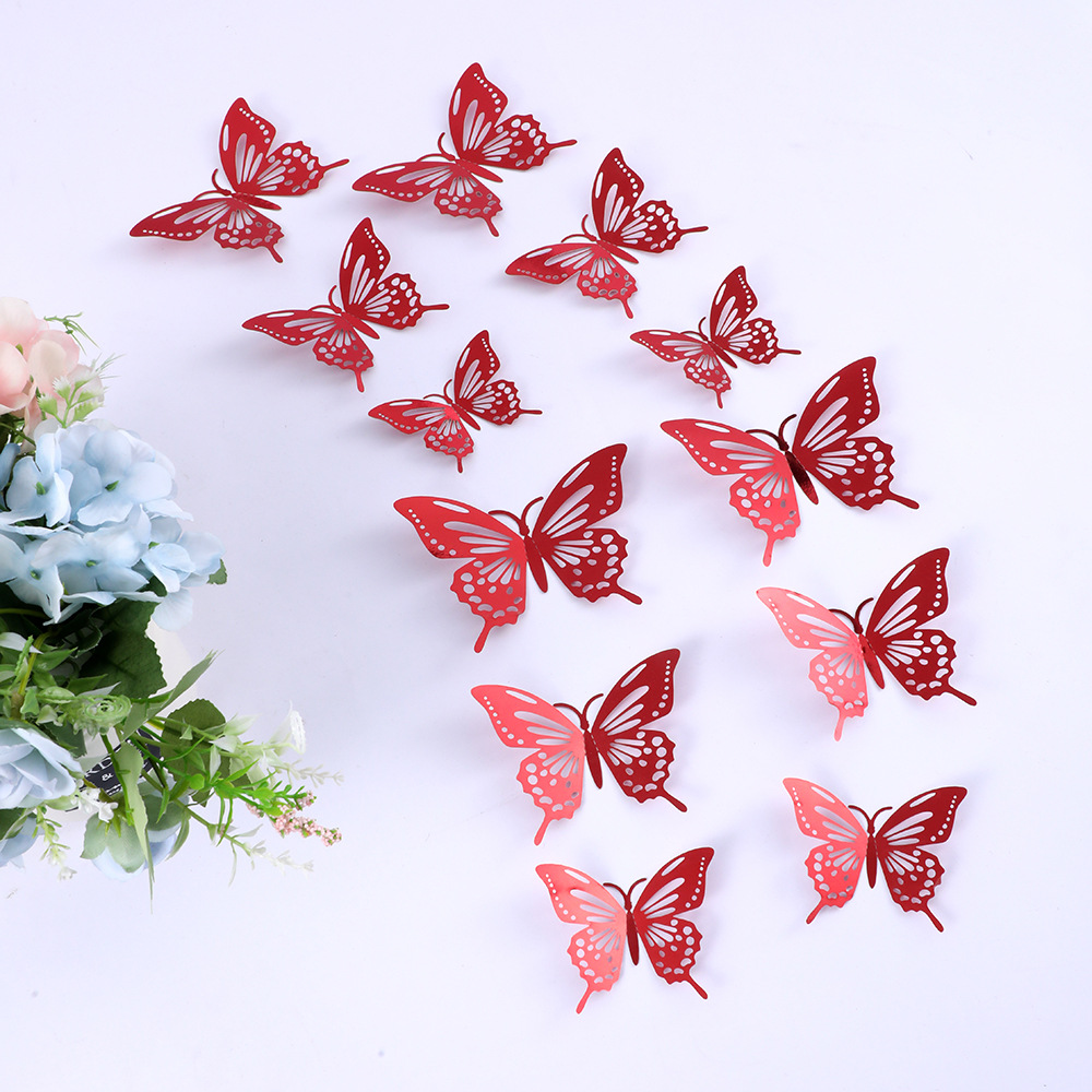 12個の立体透かし彫り蝶壁紙シミュレーション金属質感蝶壁シールパーティー壁面装飾
