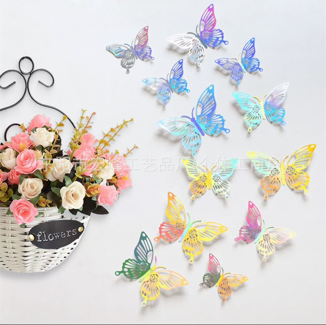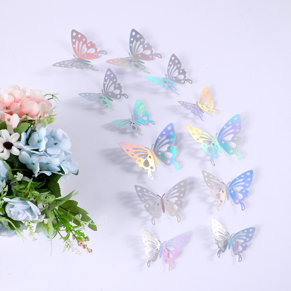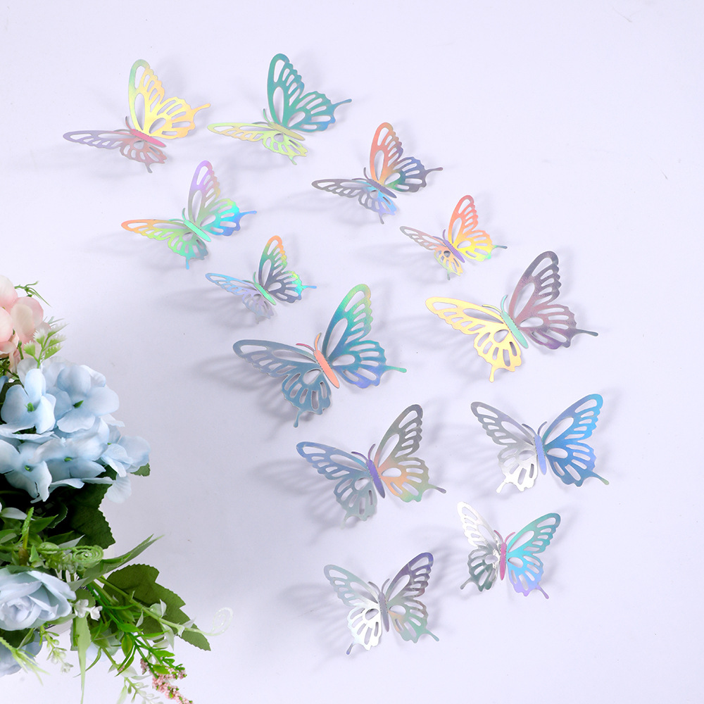 外国貿易三次元カラーレーザー中空蝶パッチ家の装飾壁ステッカーケーキギフト壁の装飾ステッカー