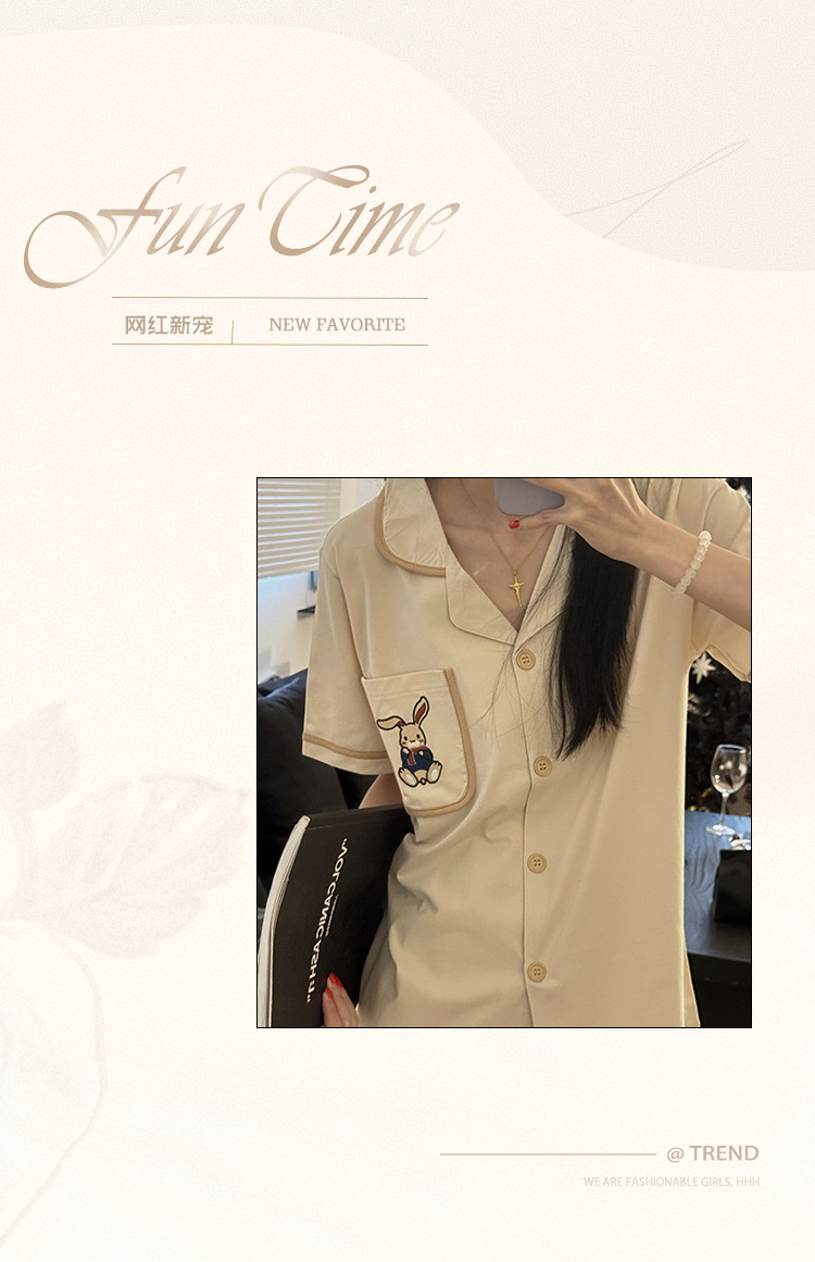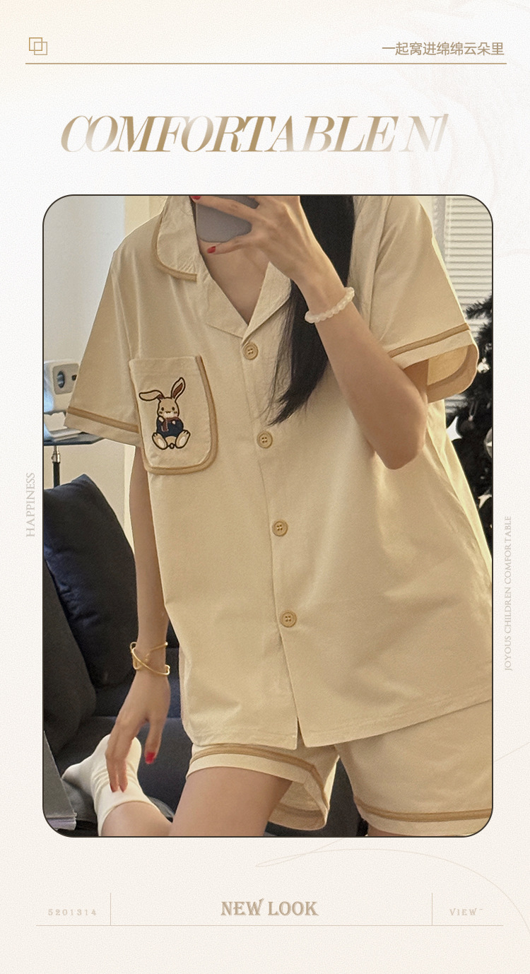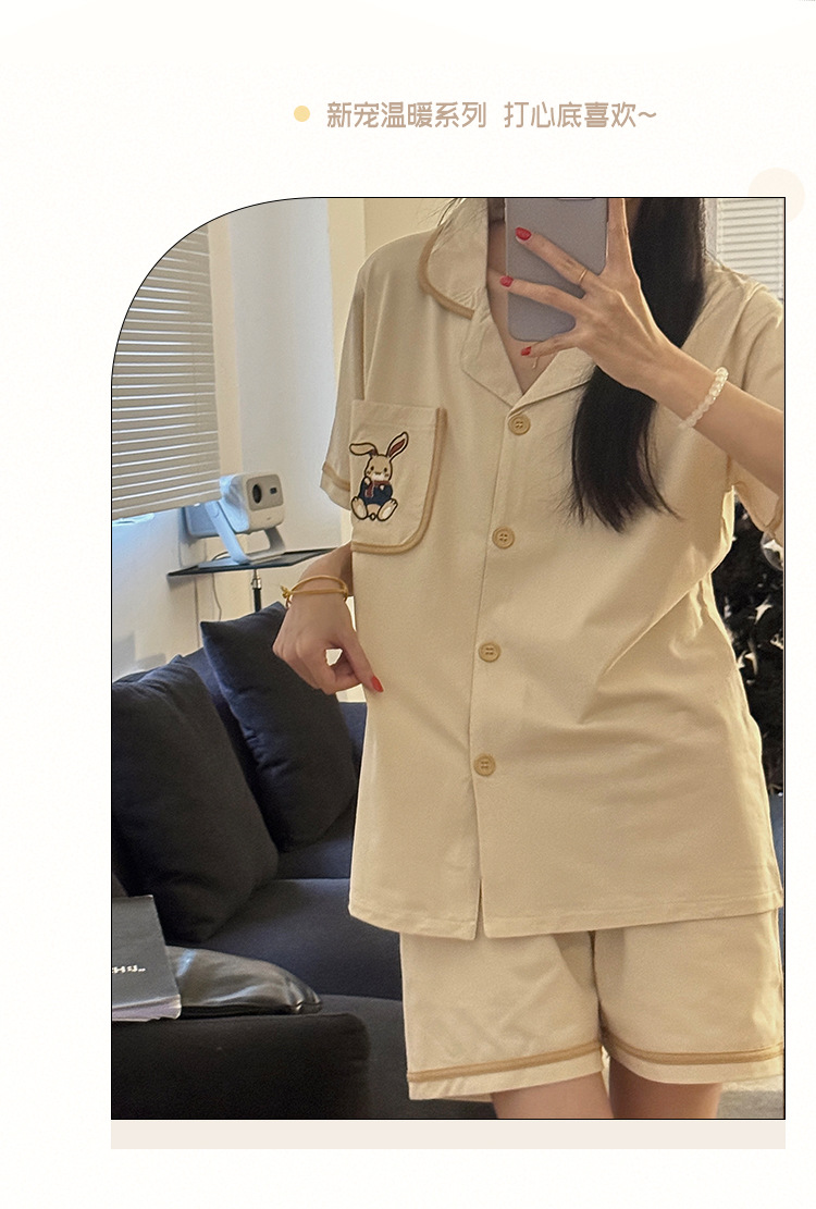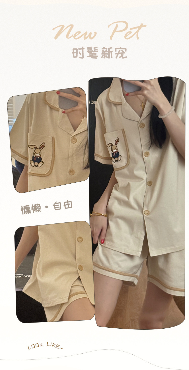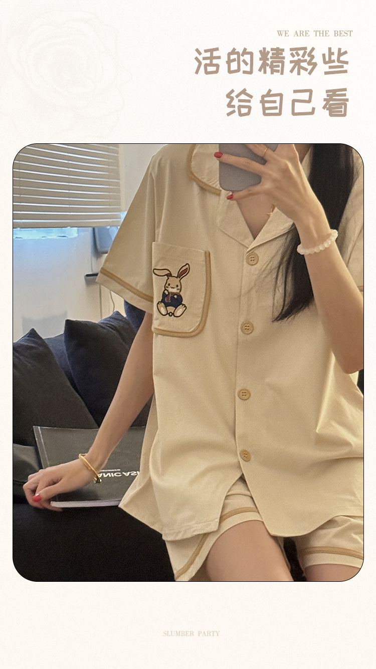 純綿のパジャマの女性の夏の半袖の半ズボンの甘い漫画のウサギの日本の風ネットの赤い学生の2つのセットの部屋の服