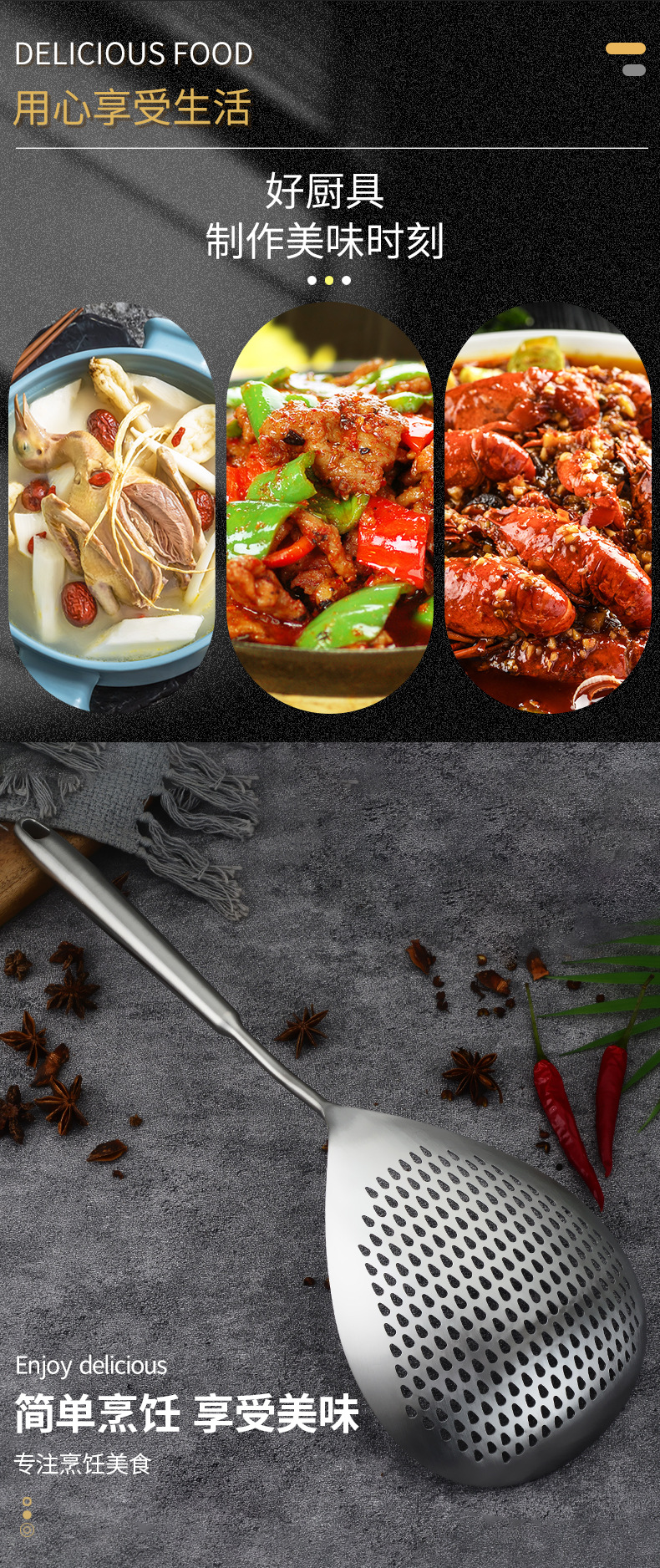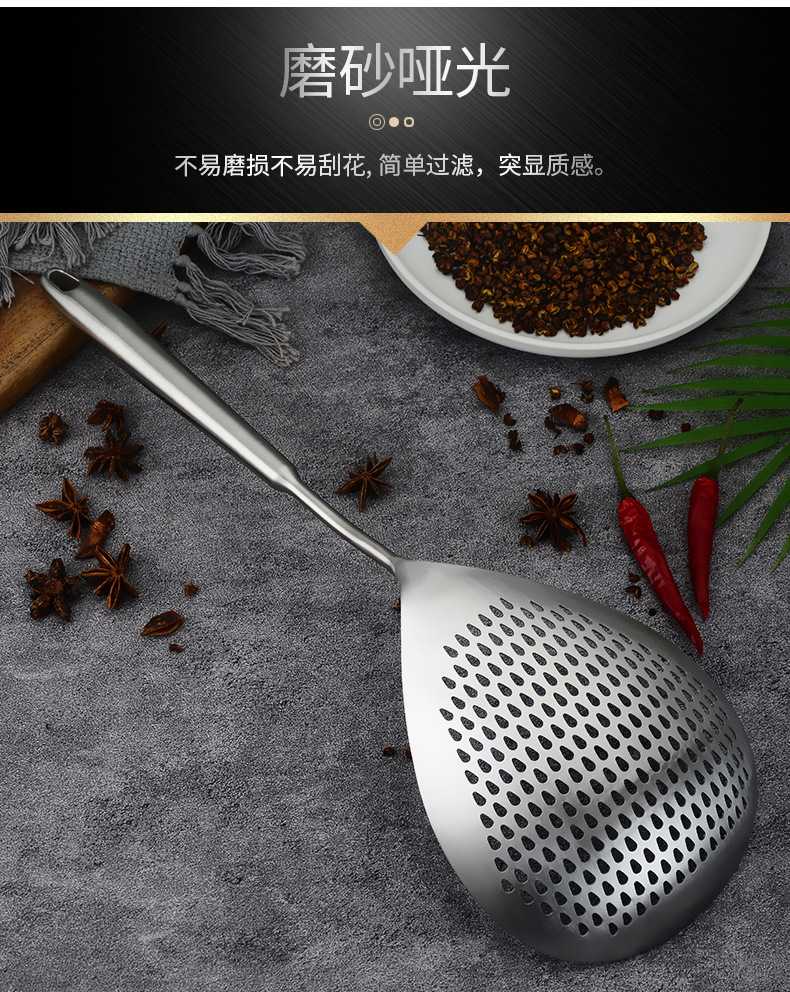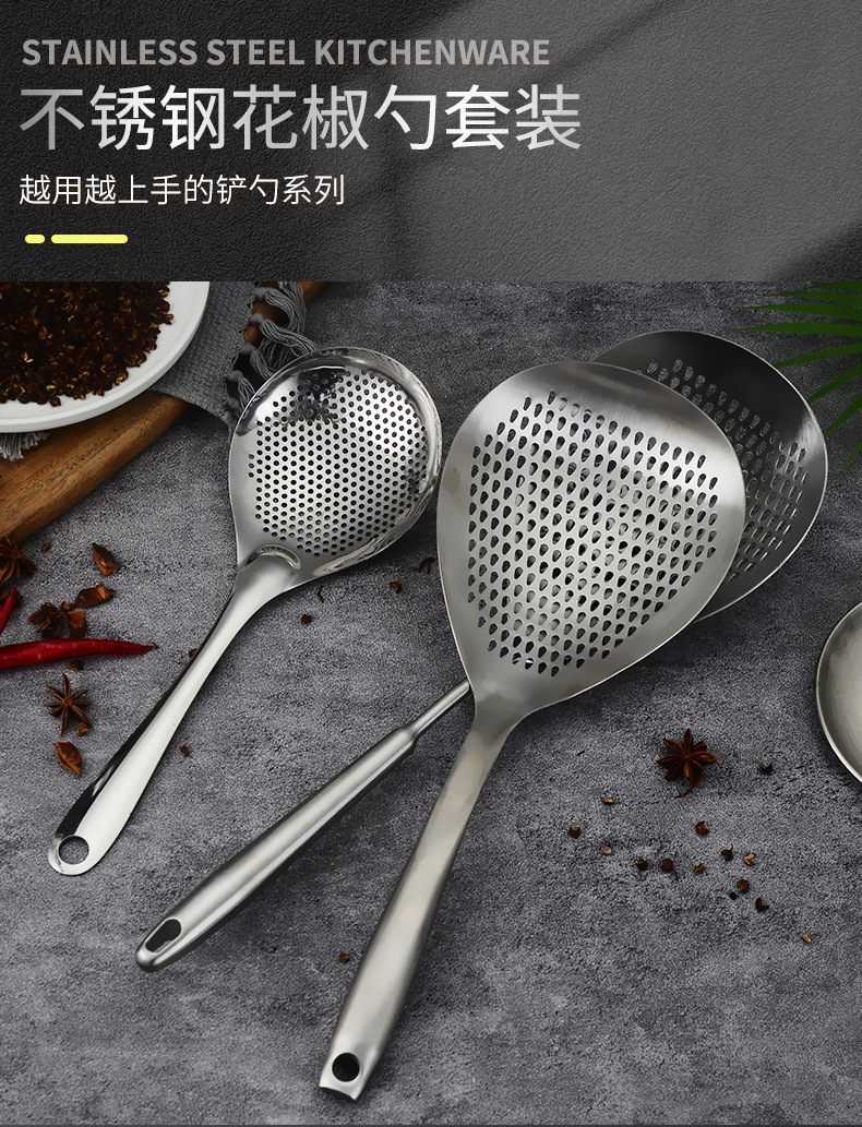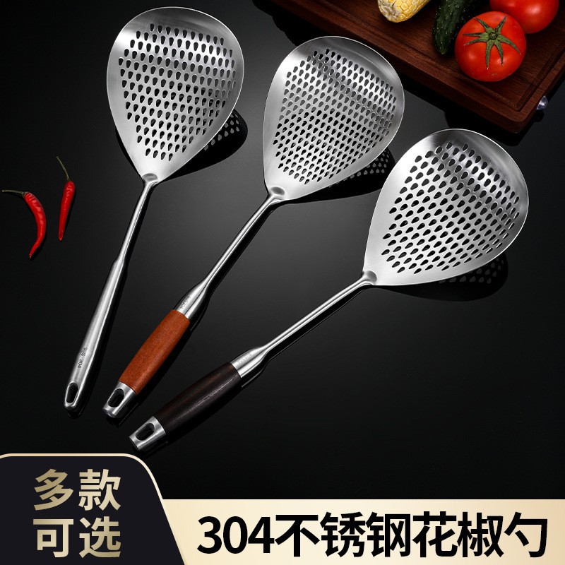 304ステンレス鋼の厚いスプーン家庭用台所の餃子鍋の水切りスプーンの揚げ網の花椒のスプーン