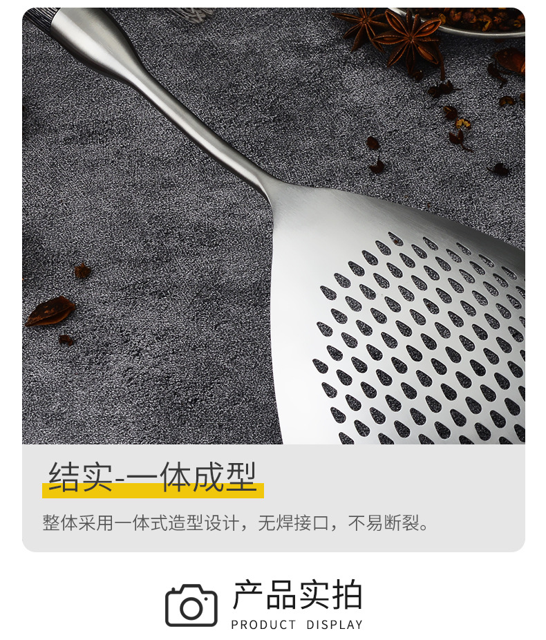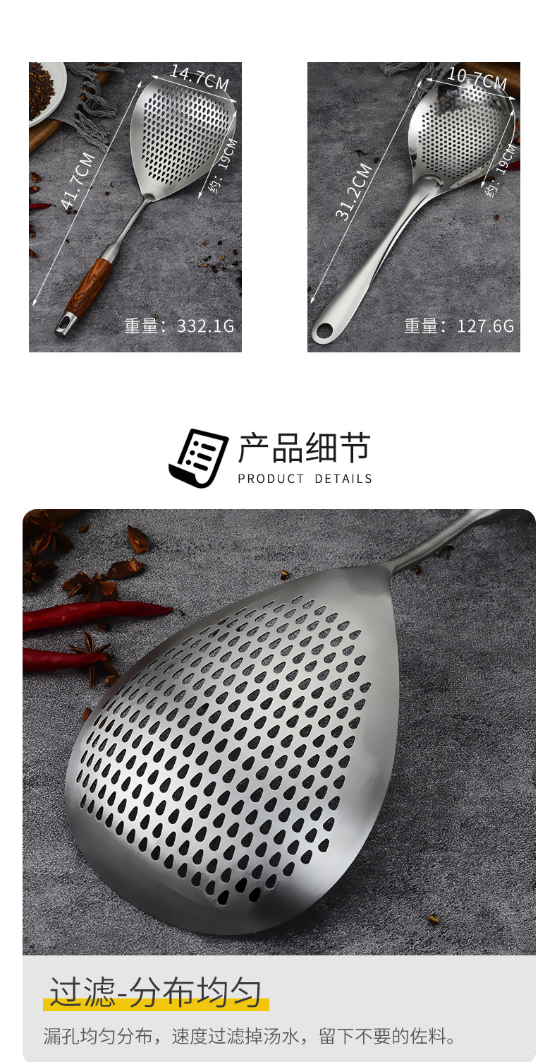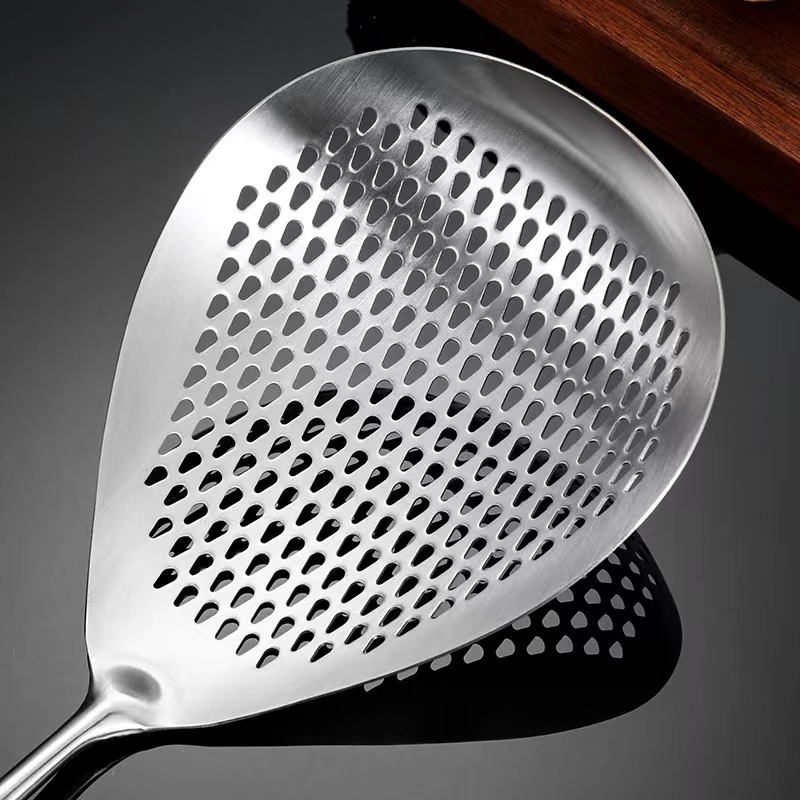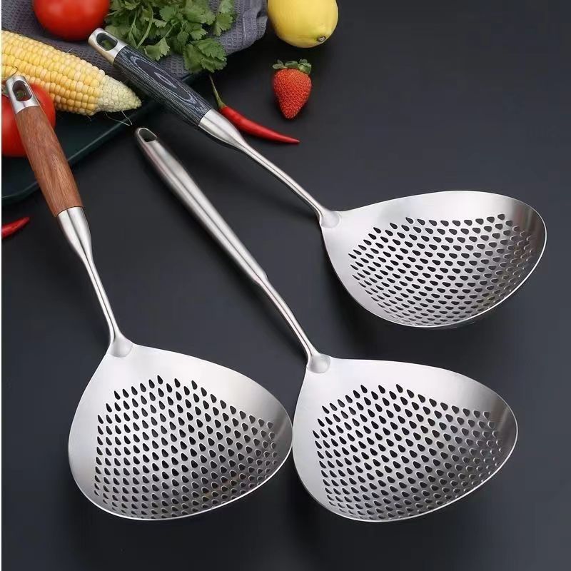 201ステンレスのスプーンの家庭用台所の揚げ物の神器のポテトチップスの濾過網の大きいサイズの鍋のスプーンの餃子のすくい面