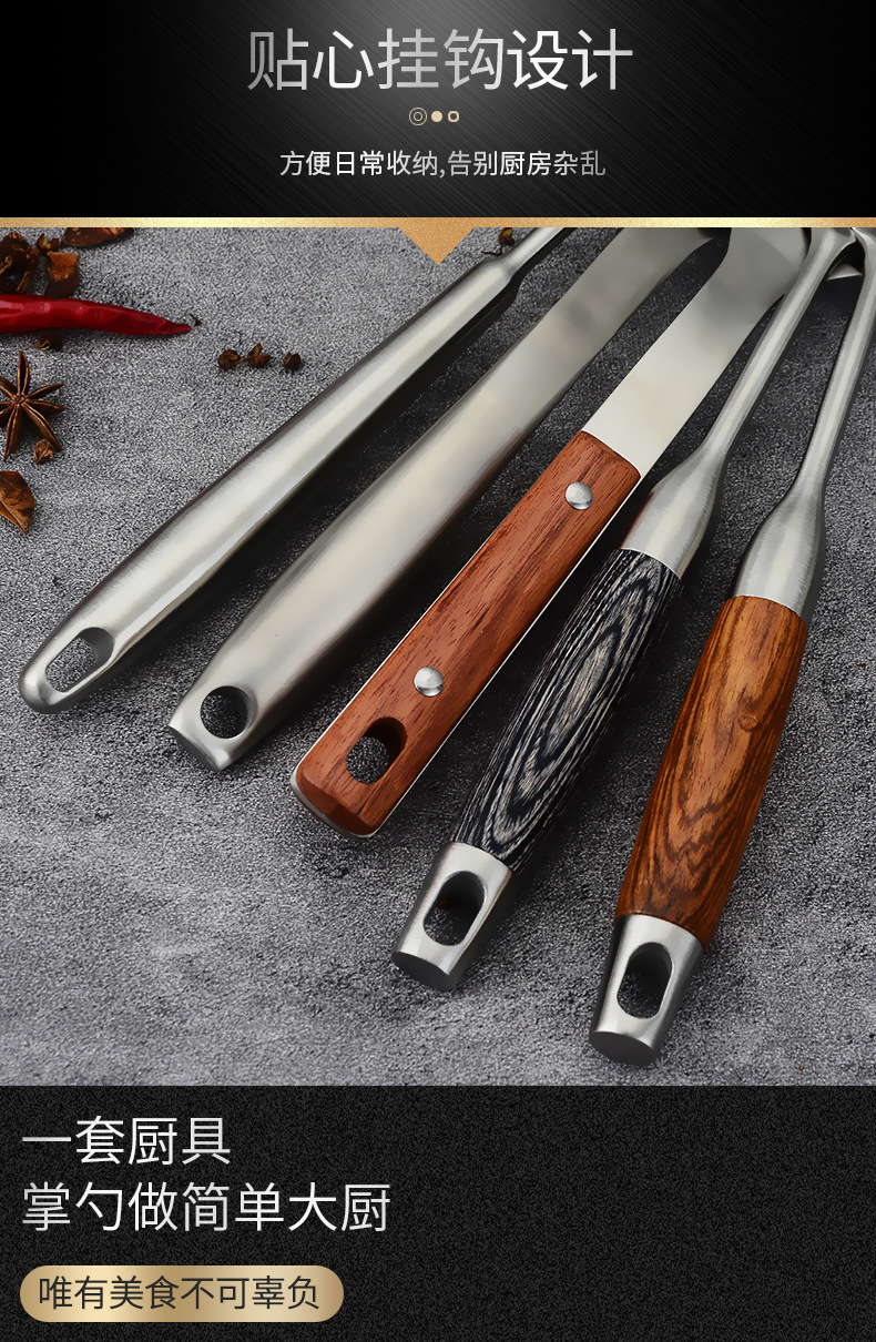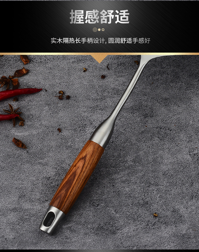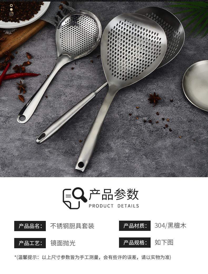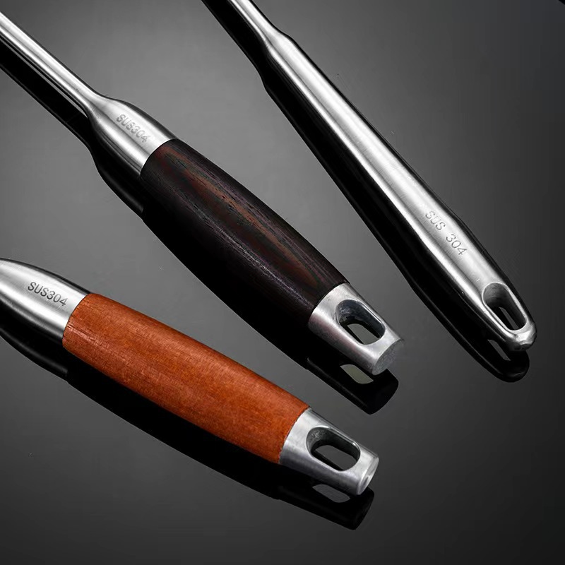 304ステンレス鋼黒彩木調理用スプーン・スパチュラ、厚手のしゃもじ、ザル、鍋つかみ、揚げ物用スプーン、新中式スタイル