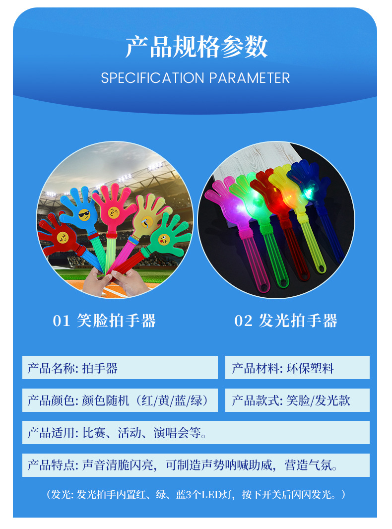 拍手器鼓掌器跨境大号手拍发光拍手器28CM鼓掌拍手器拍手印刷logo