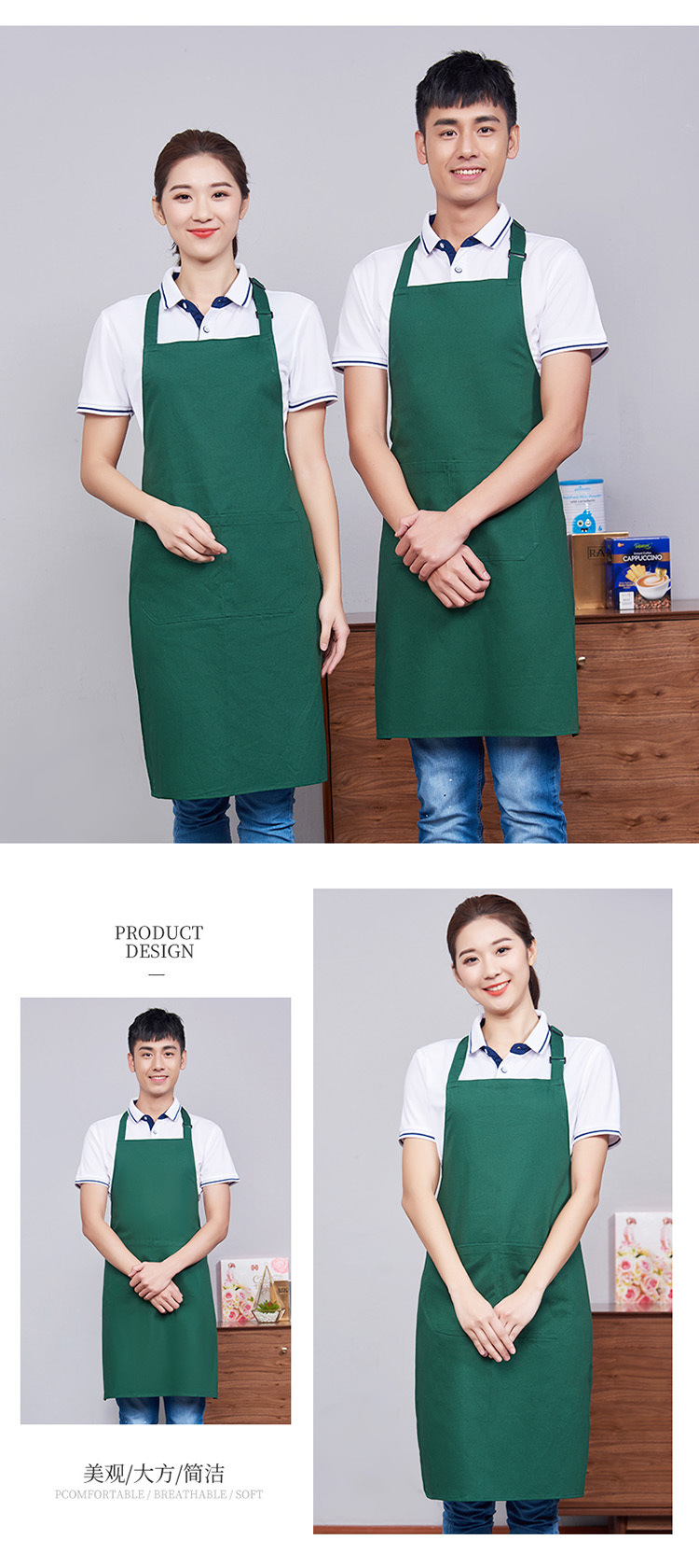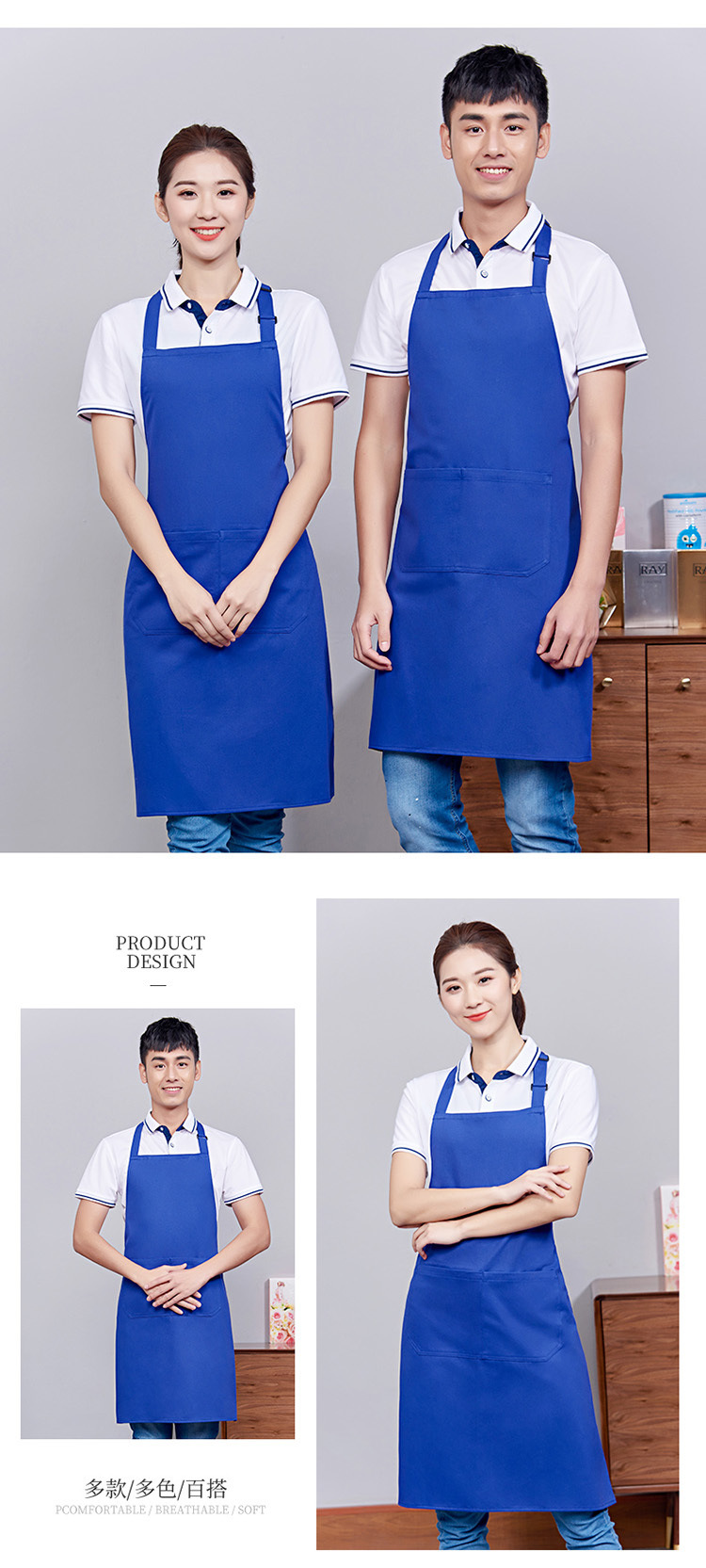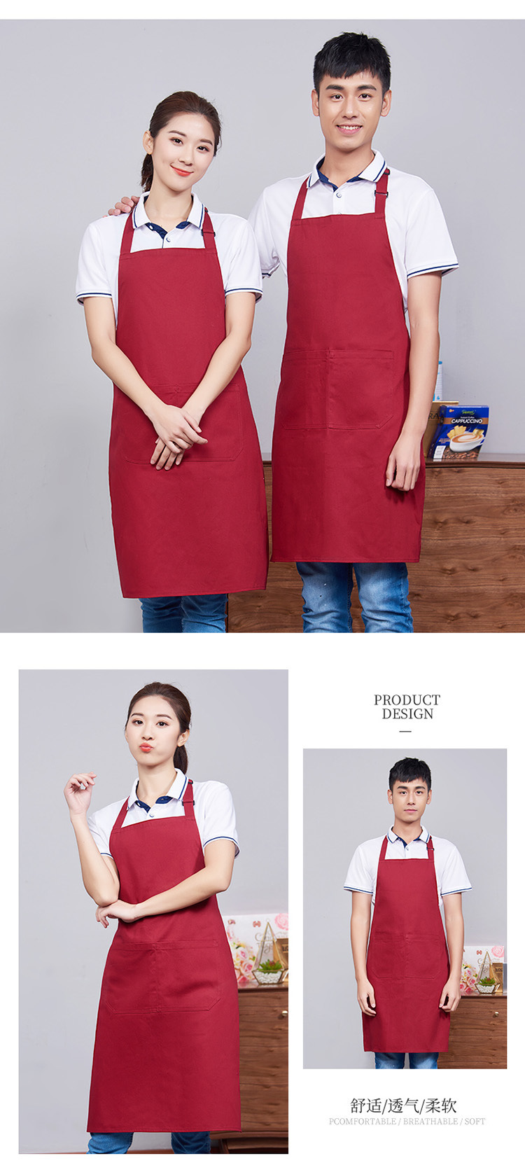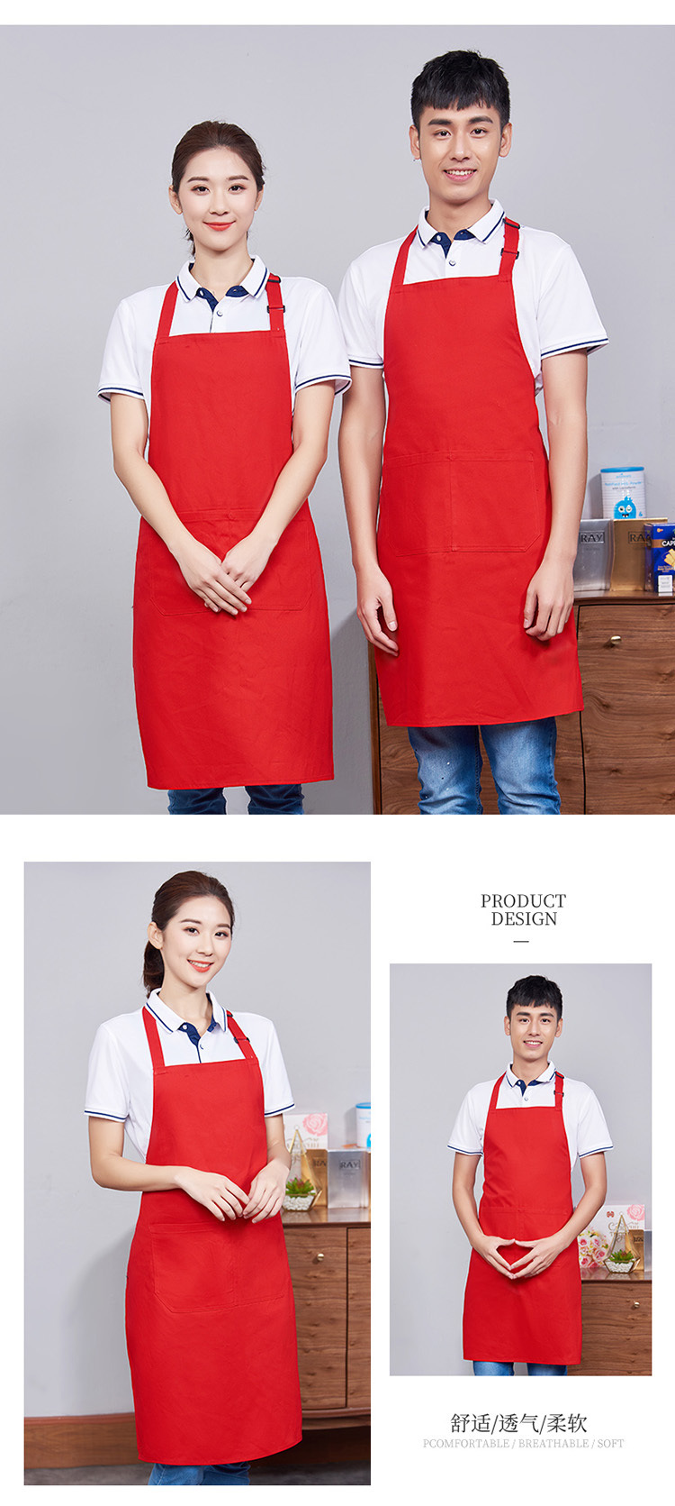 首掛け調節可能純綿エプロン印logoレストランホテル防水エプロン刺繍キッチン防油エプロン印字