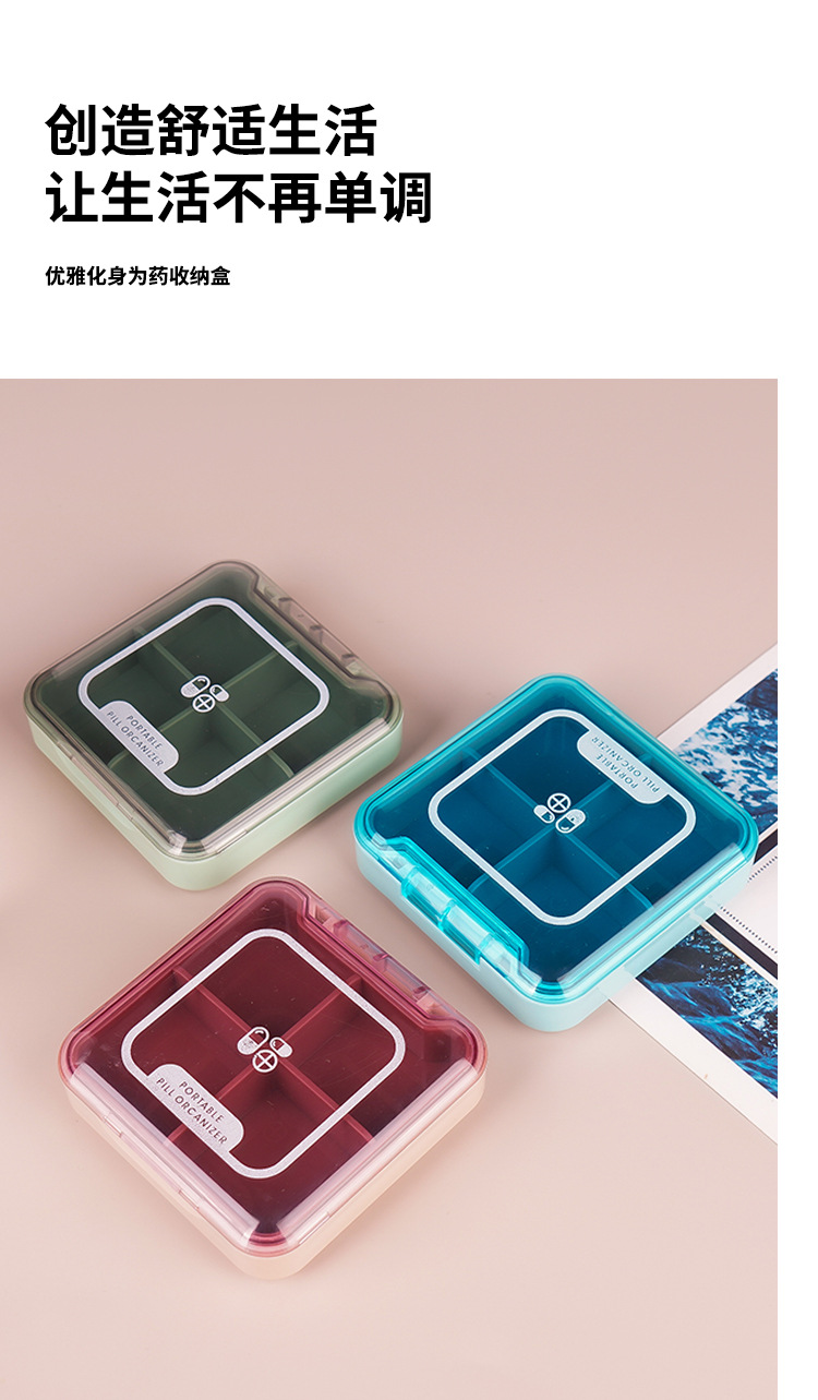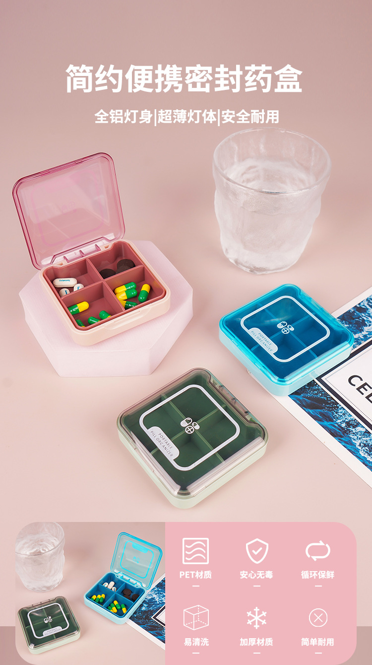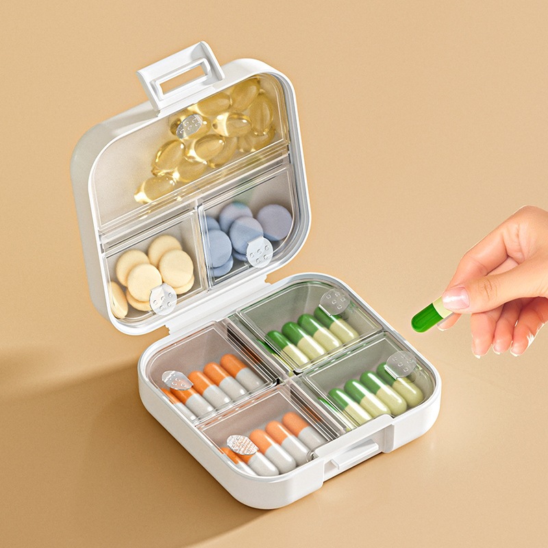 携帯用の小さい薬の箱のミニの小さいサイズの携帯用の薬の箱の4格の収納の箱の旅行の錠剤の薬品は薬の箱を分けて入れます。