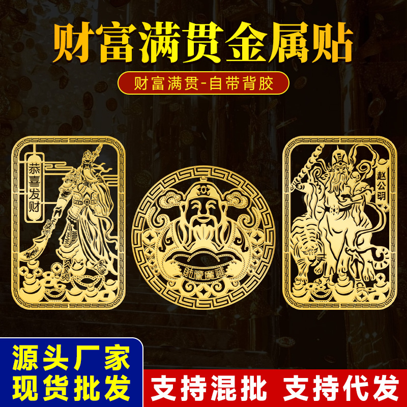 オリジナル五路文武財神趙公明金属ステッカー装飾携帯電話背面ステッカー工場在庫卸売工芸品
