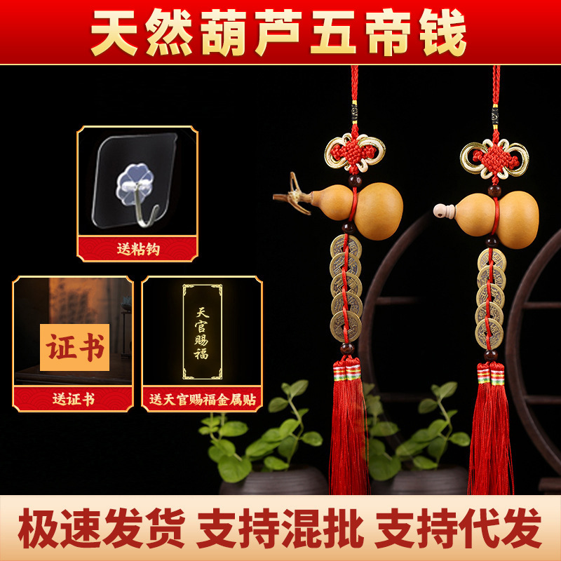 五帝銭ペンダント 天然葫芦 ドア対ドア 寝室 キッチン 開運 龍頭 中国結び 幸運ペンダント