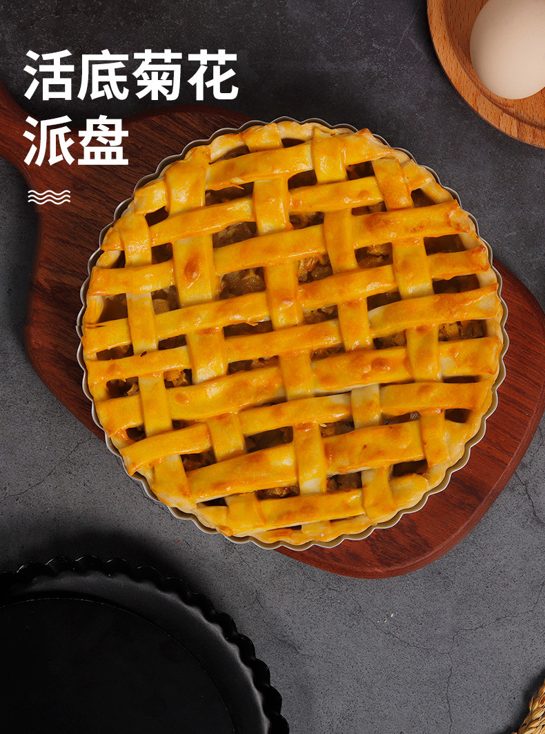 不粘菊花苹果派盘活底挞模具6寸8寸披萨盘烤盘烘焙工具塔派烤箱用