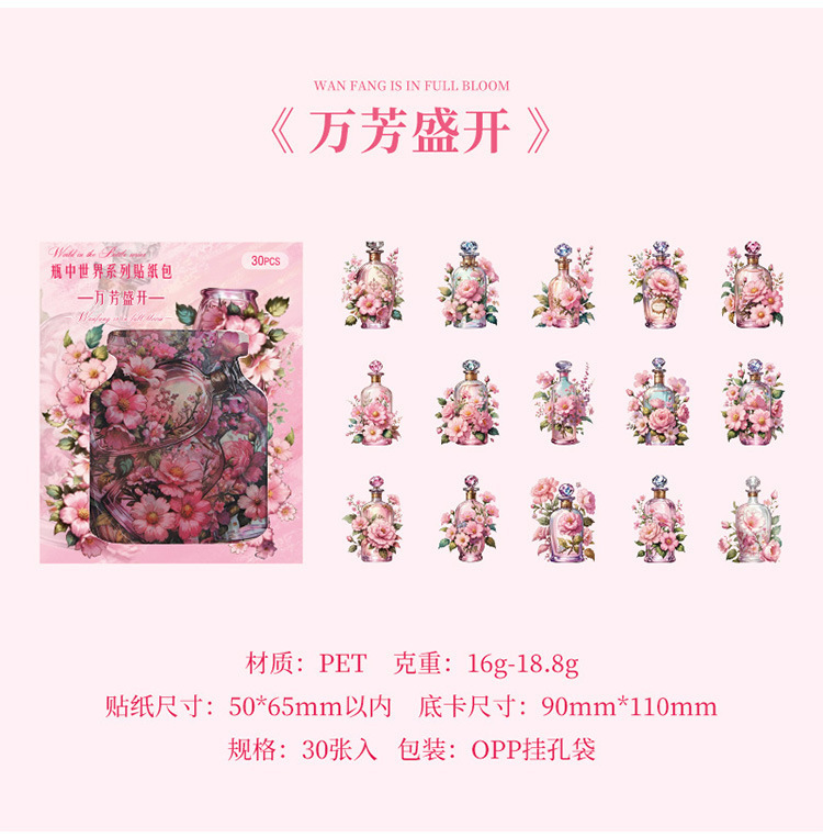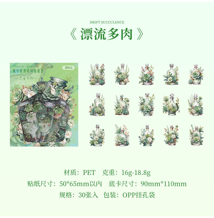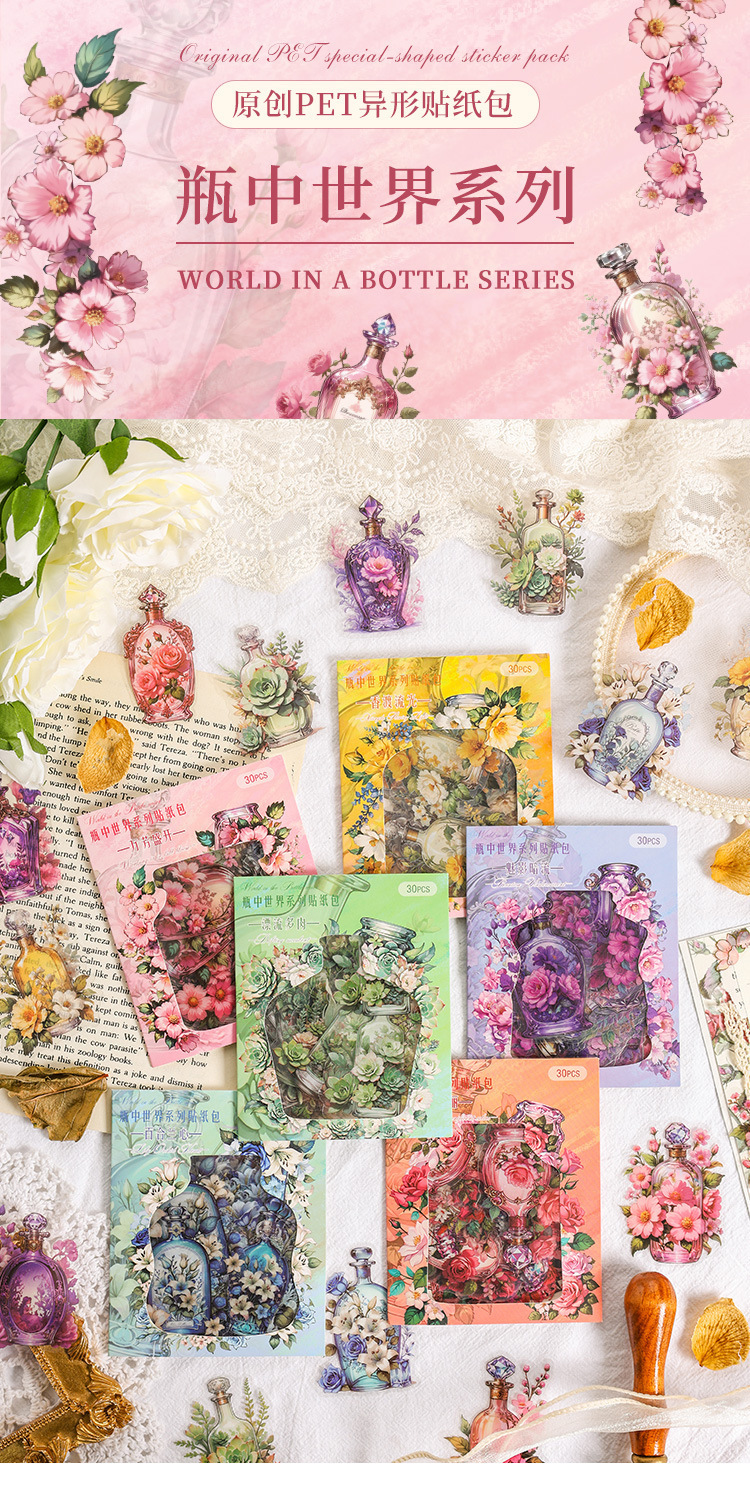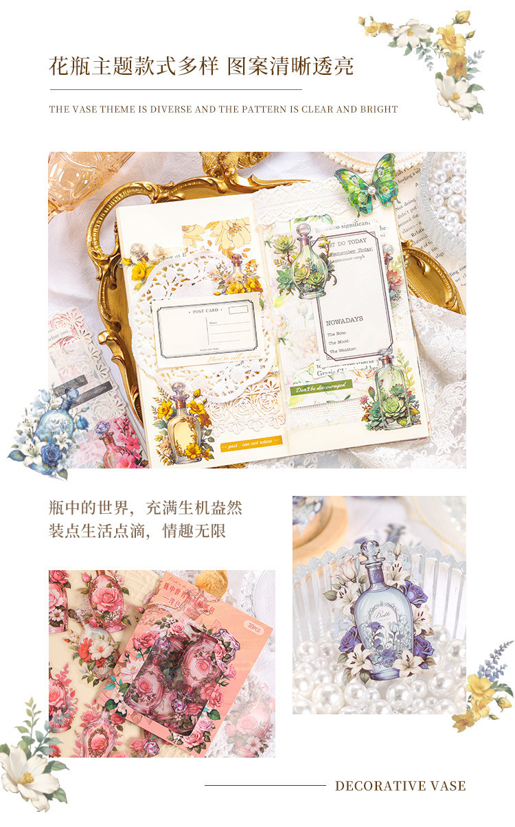 瓶の中の世界petシール花瓶創意植物花卉異形カード流麻手帳装飾素材タイル